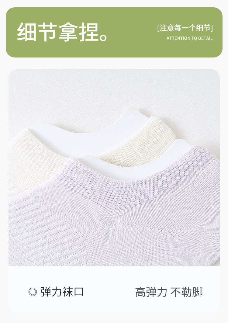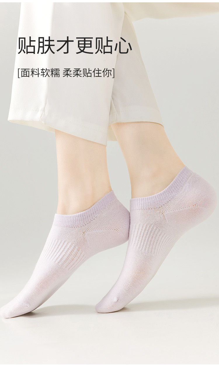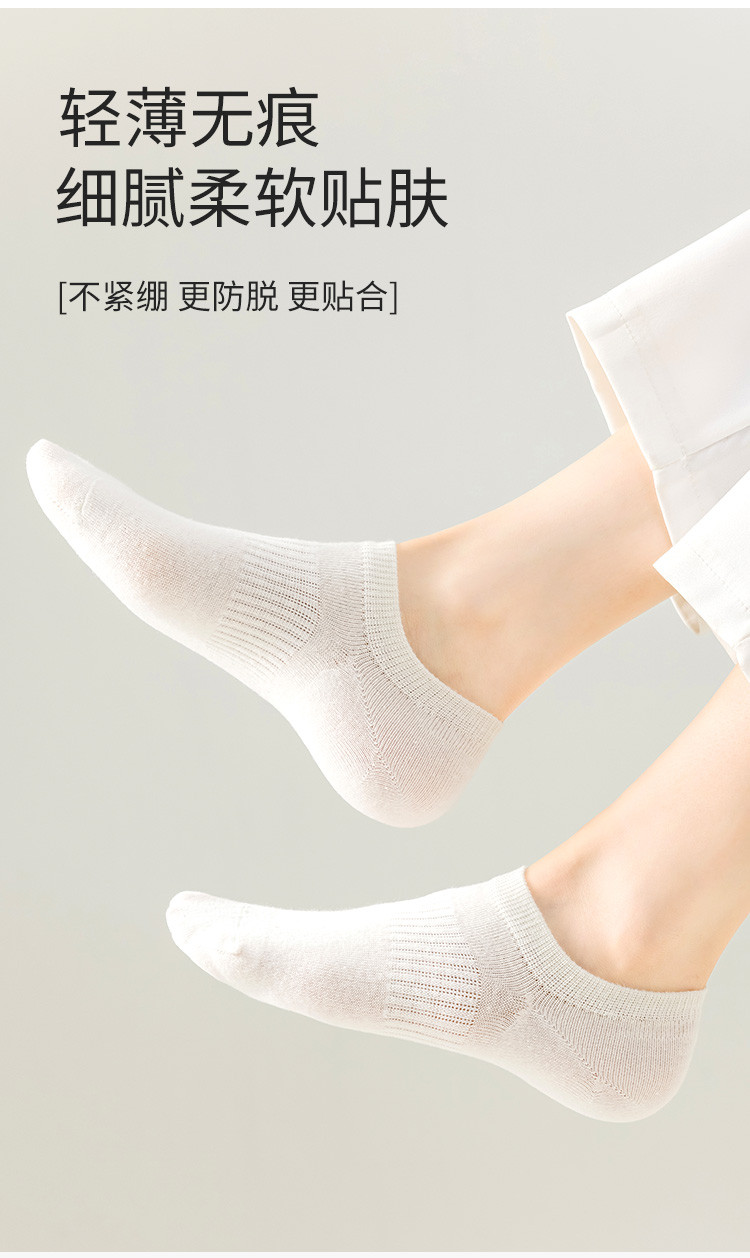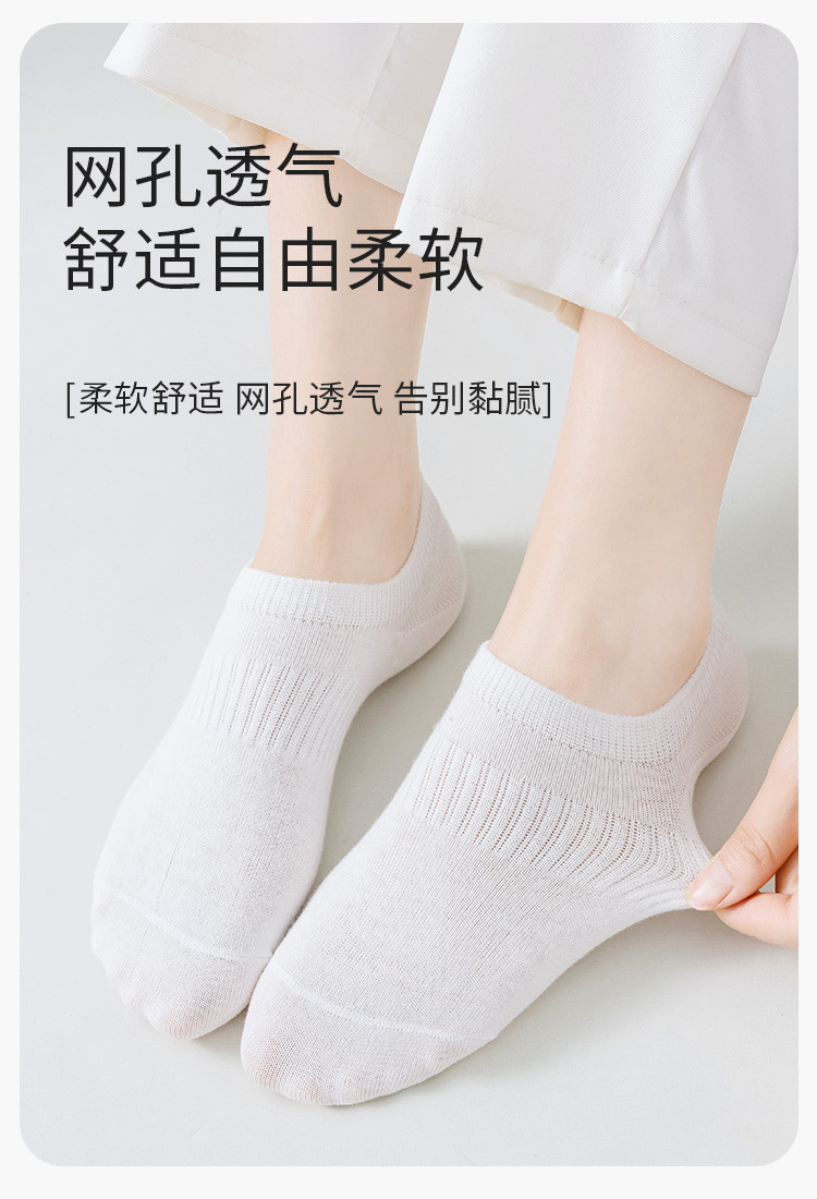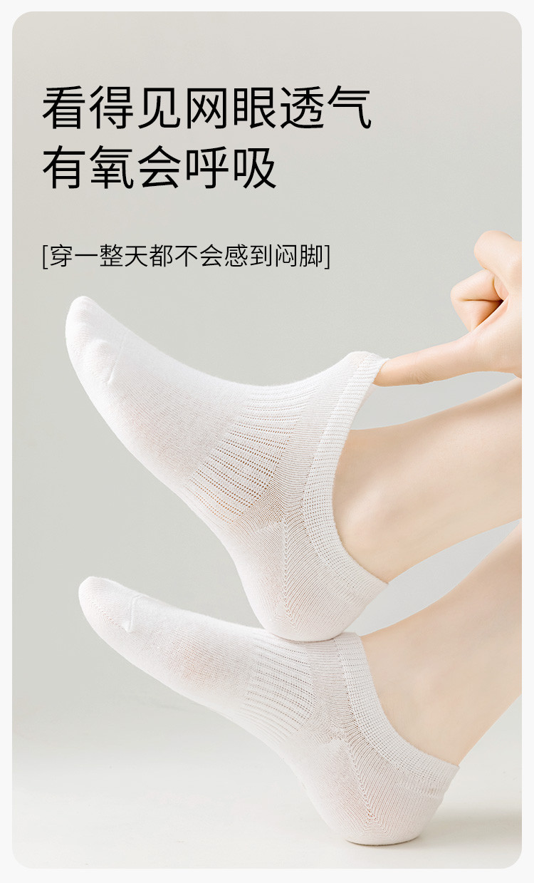 商品名称:【100纯棉】5双装夏季薄款防臭女袜网眼透气隐形不掉跟船袜女 165963