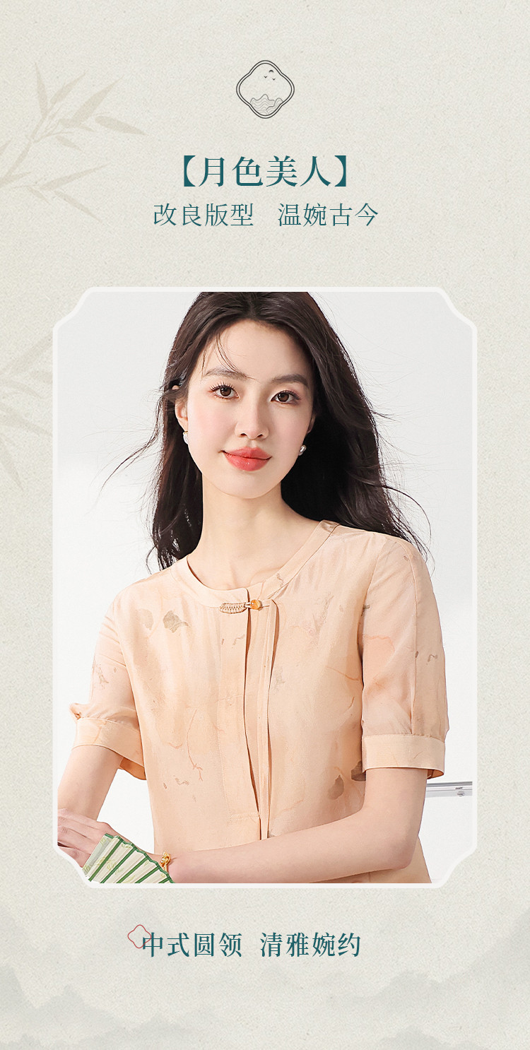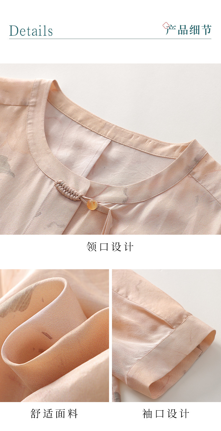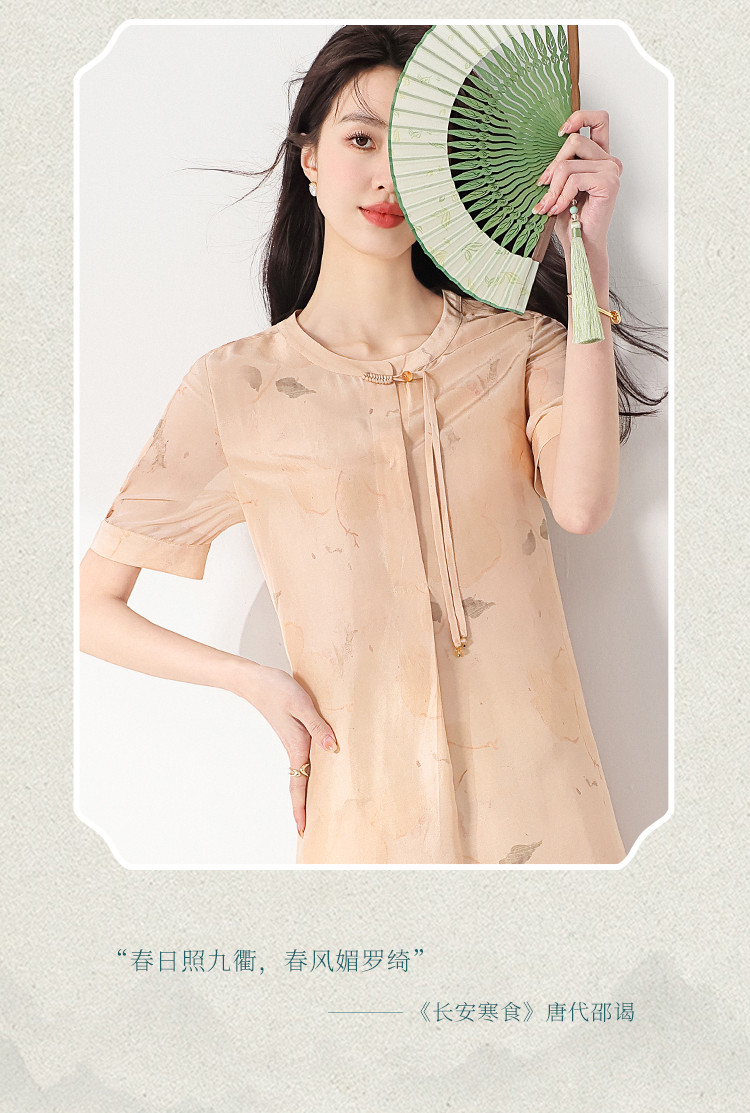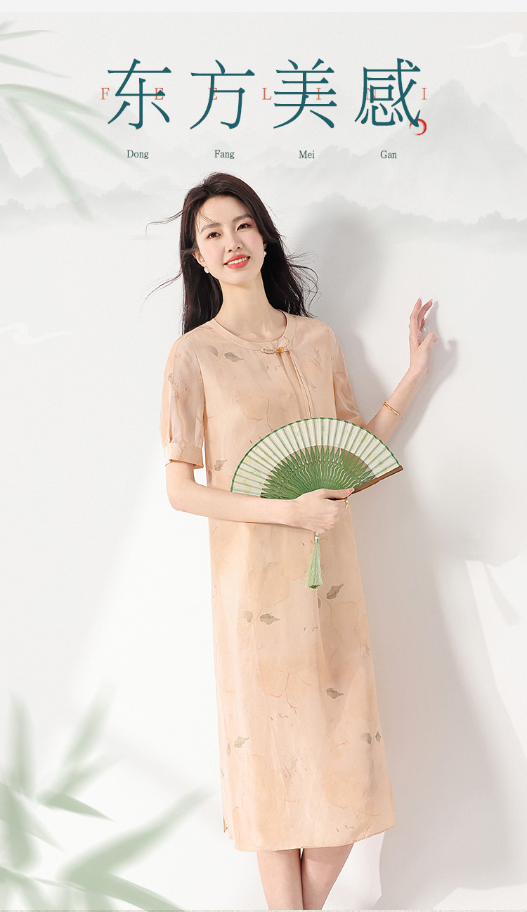 商品名称:100%桑蚕丝新中式短袖印花国风中长款真丝连衣裙女妈妈装裙子 708371