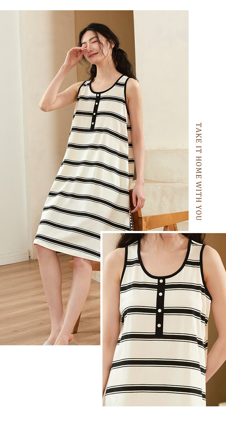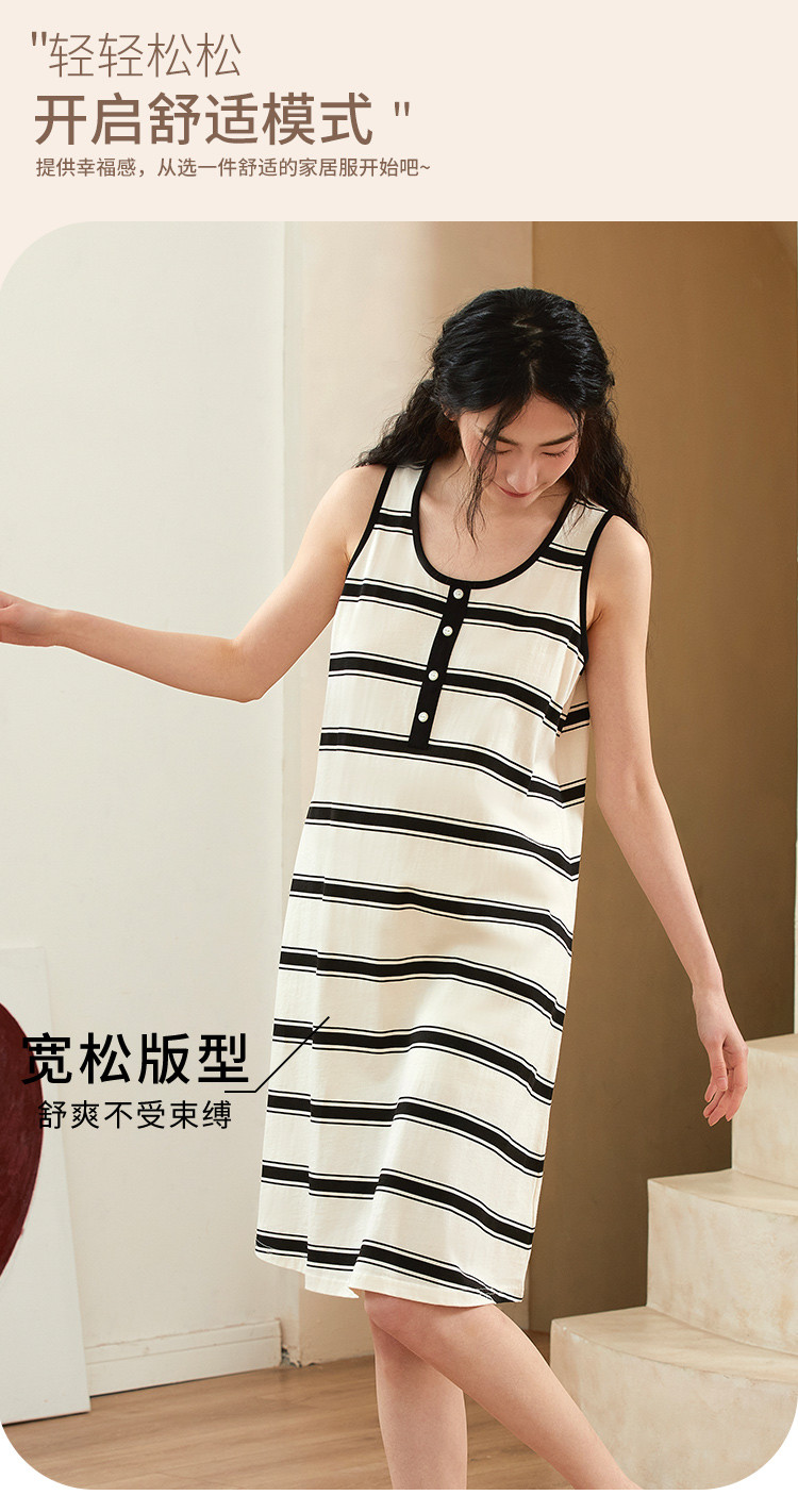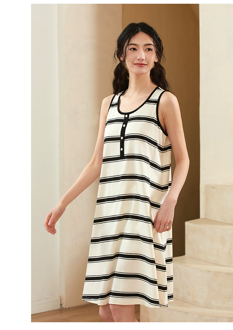 商品名称:【100%棉】透气条纹拼色亲肤无袖女士睡裙休闲舒适柔软可外穿 969099