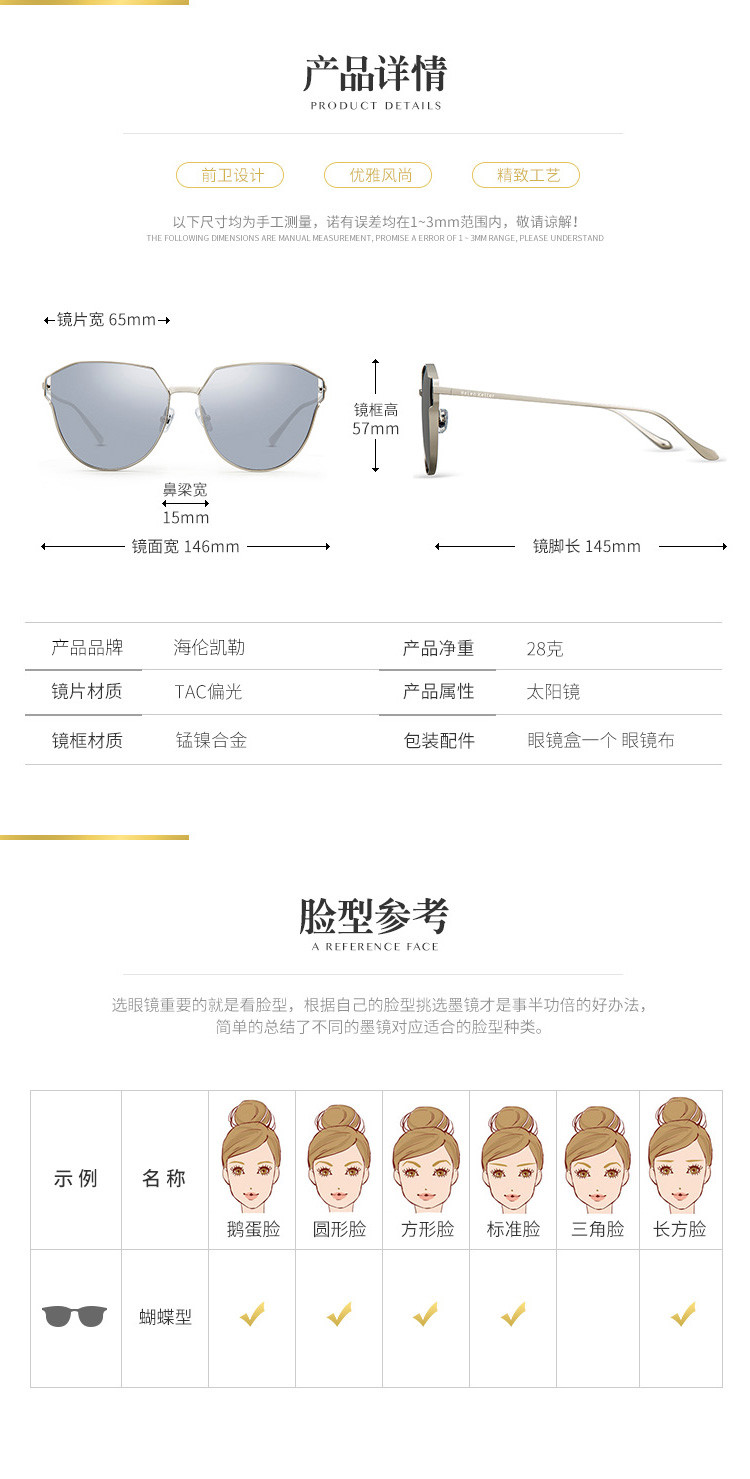 商品名称:海伦凯勒眼镜女款时尚大框墨镜金丝边女偏光女士太阳镜 468187