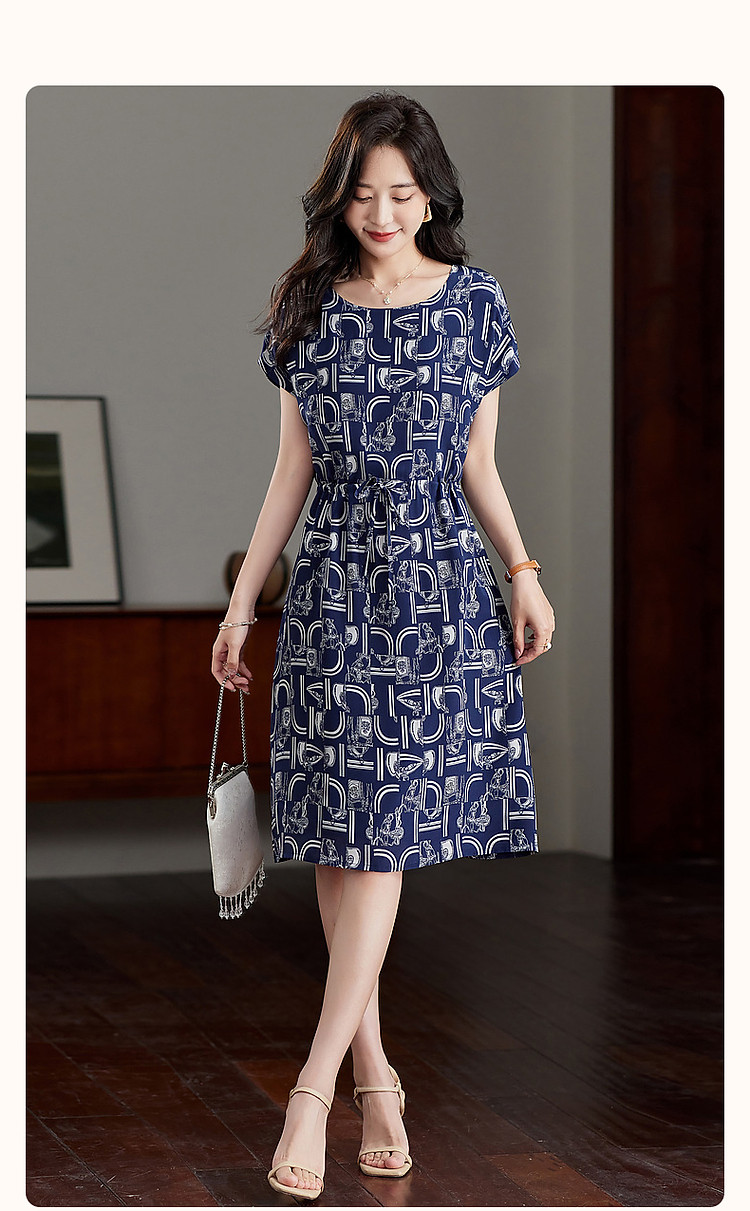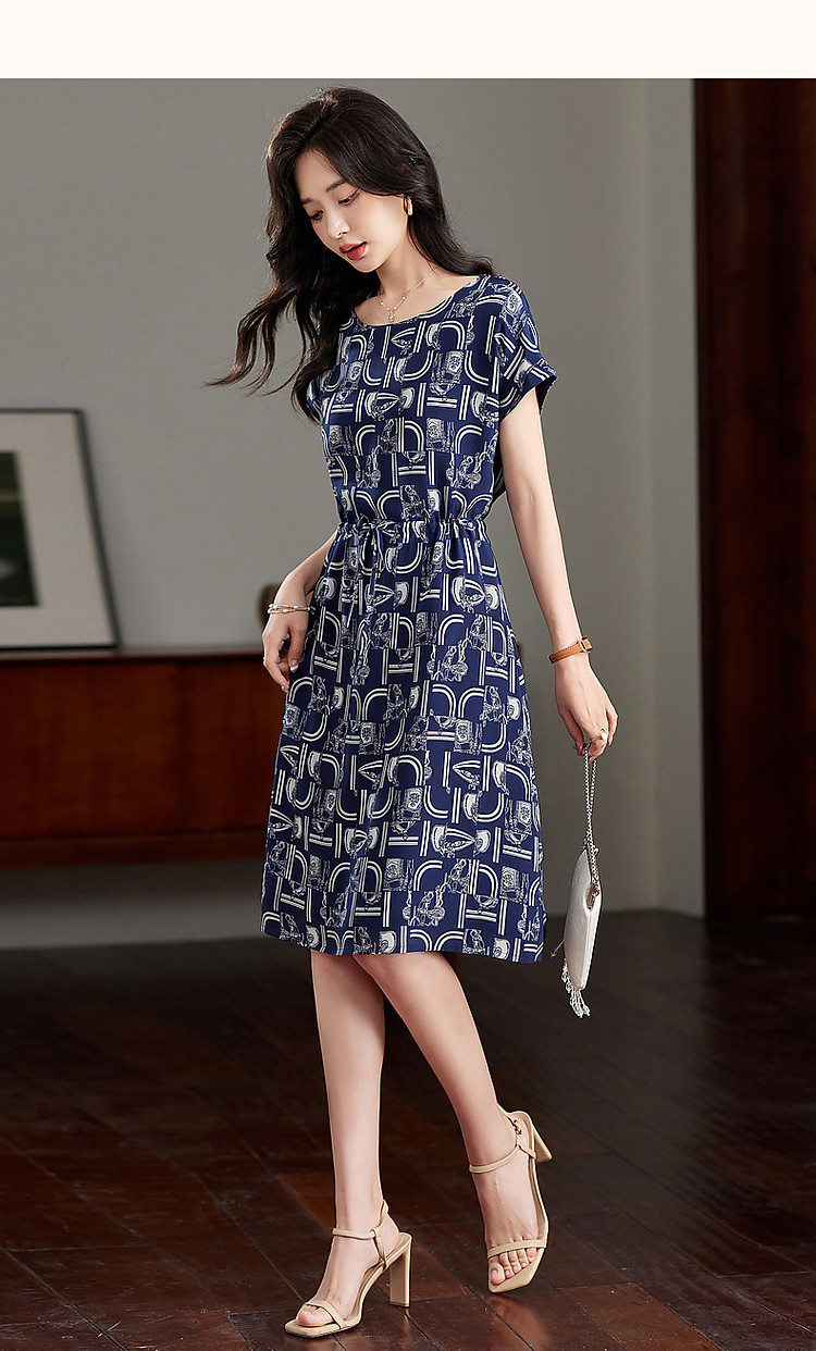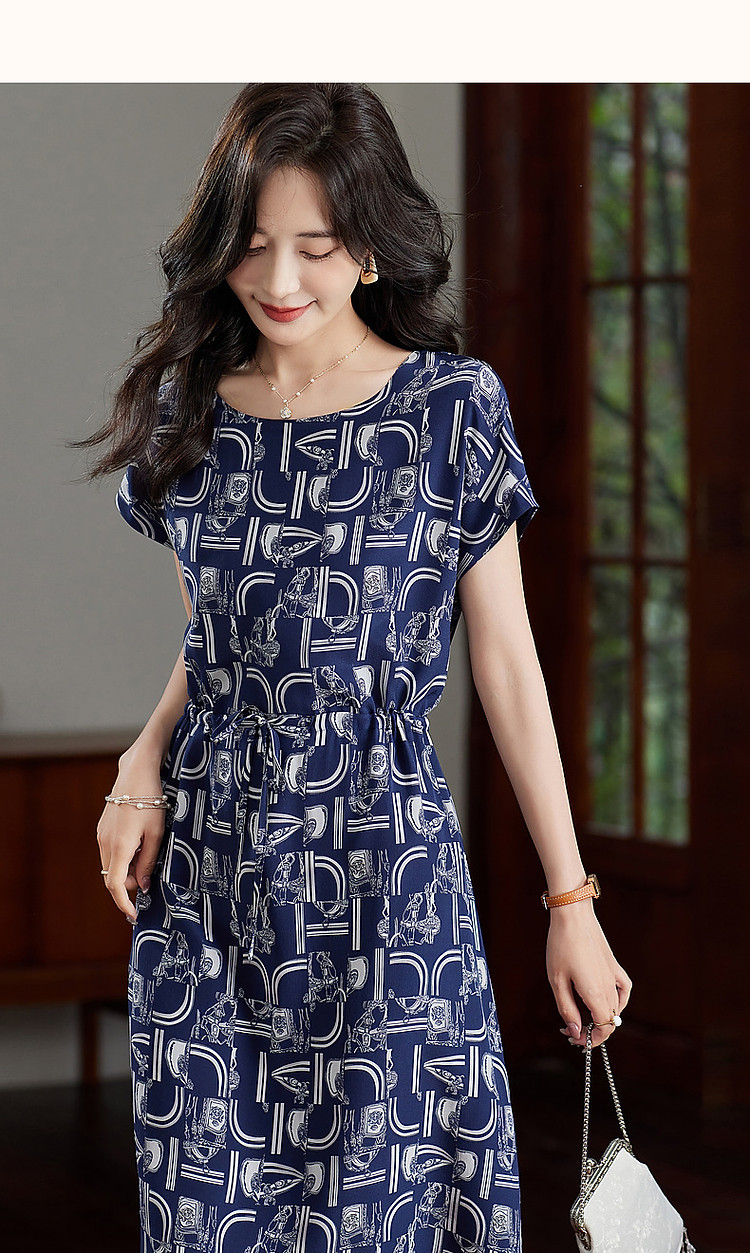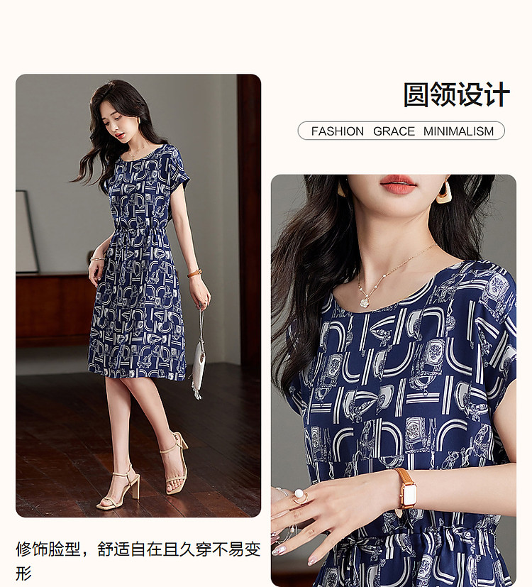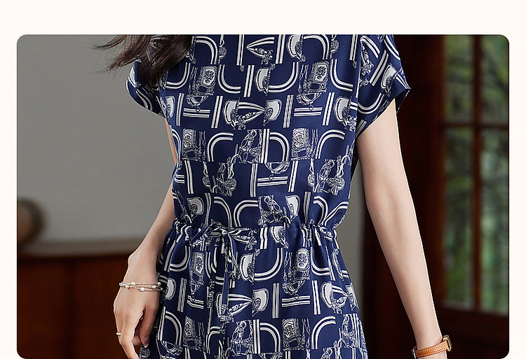 商品名称:【真丝俱乐部】夏名媛风桑蚕丝抽绳舒适遮肉好搭连衣裙女 171777