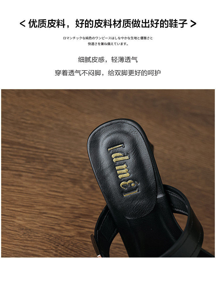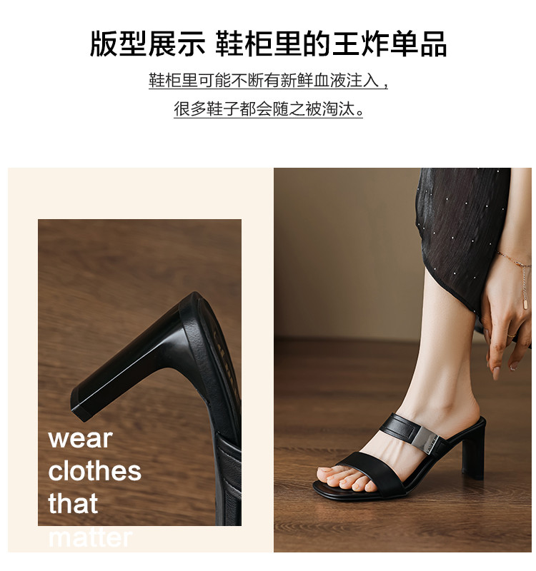 夏季简约时尚气质魅力金属方扣纯色条带露趾时装女拖鞋 285377