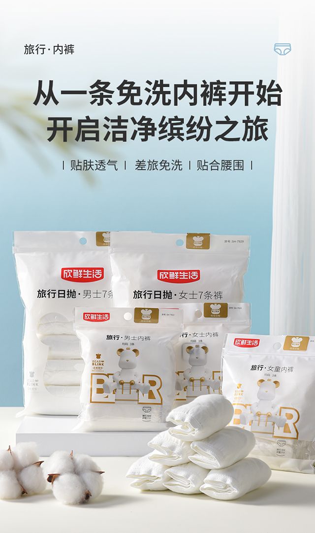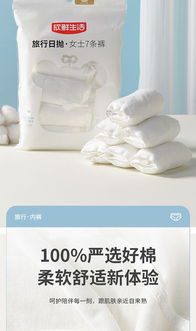 新鲜生活一次性内裤纯棉旅行出差度假免洗便携