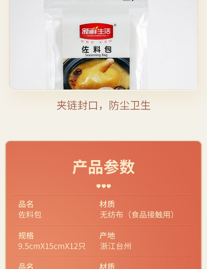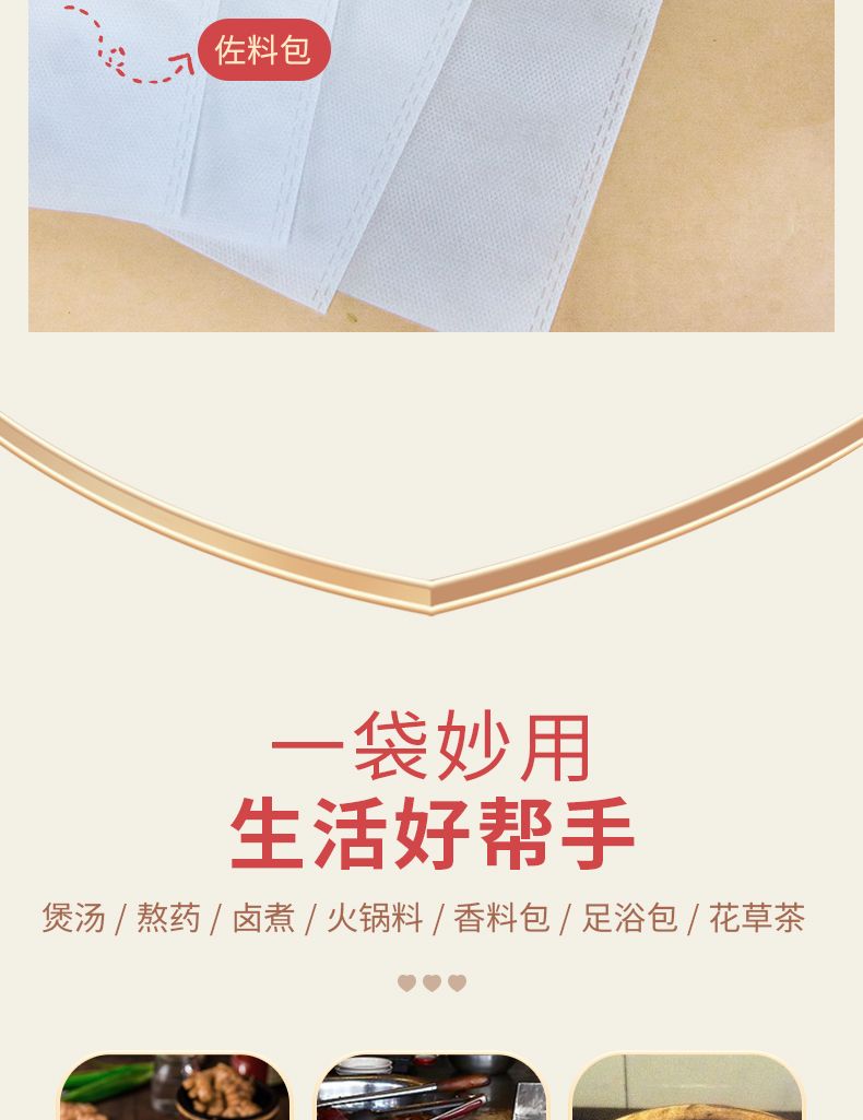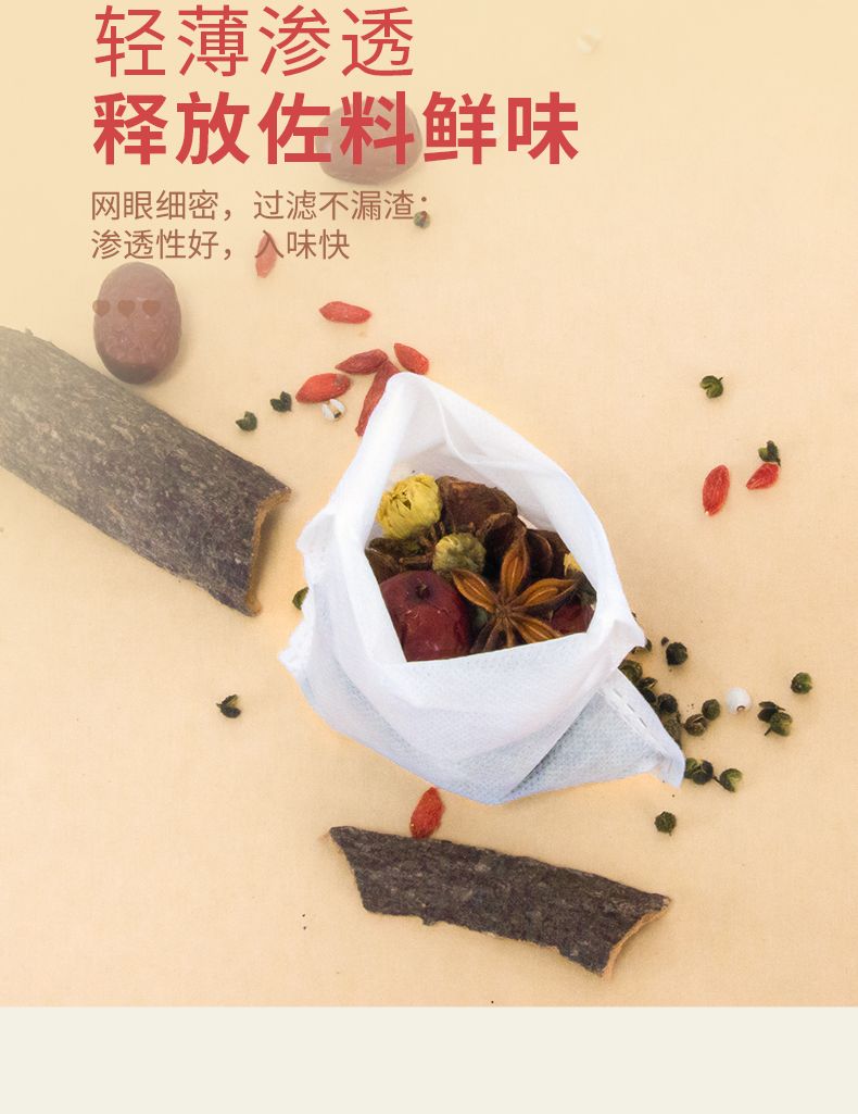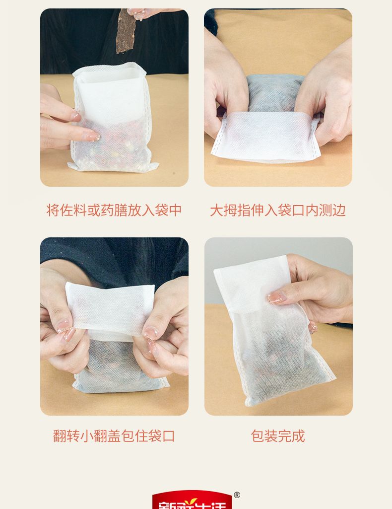 商品名称:新鲜生活茶包袋煎药佐料卤料煲汤过滤袋食品级一次性无纺布纱布袋