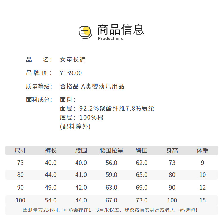 商品名称:春秋儿童裤子婴儿长裤女童运动裤休闲裤刺绣甜美 299205