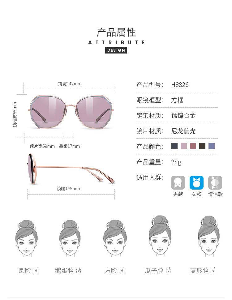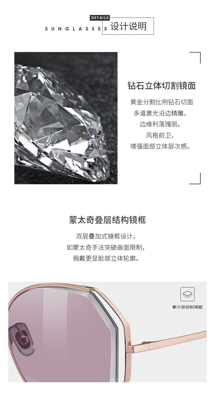 商品名称:海伦凯勒眼镜女大框多边形墨镜女士太阳镜女防紫外线高级感 822939