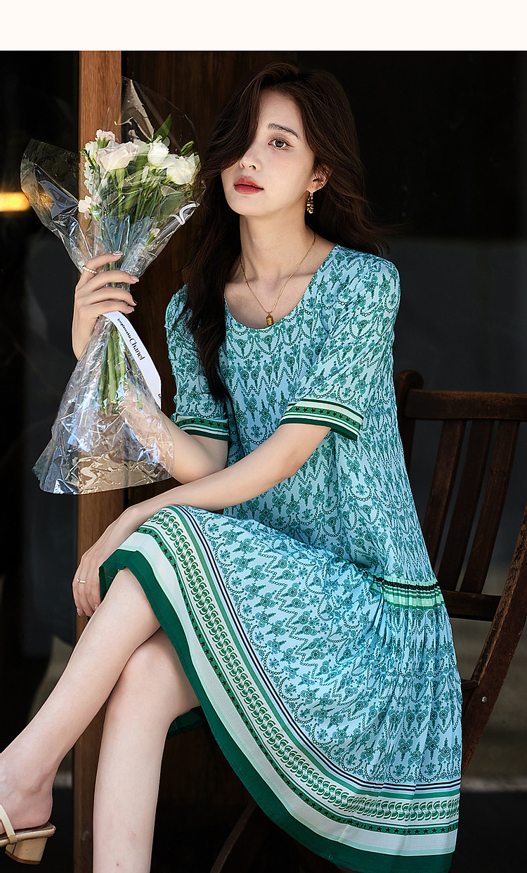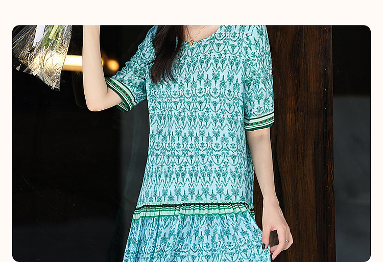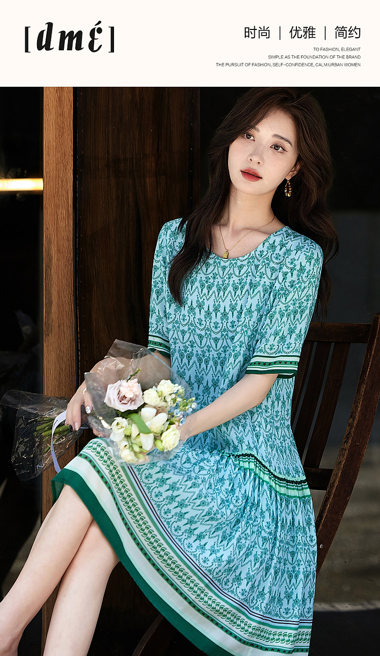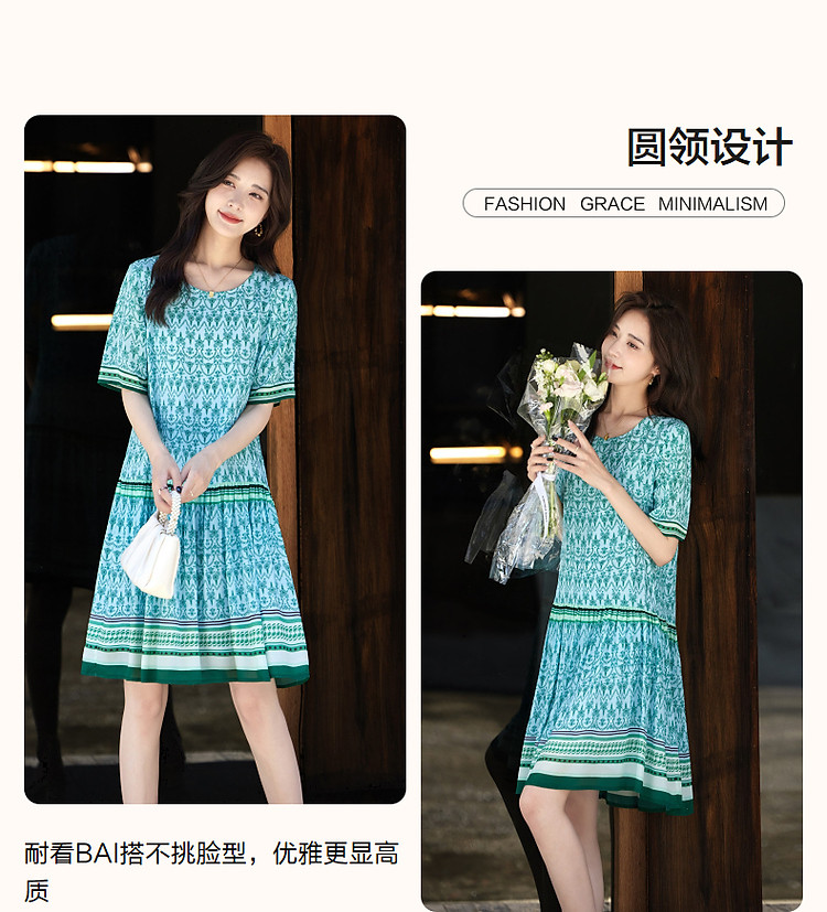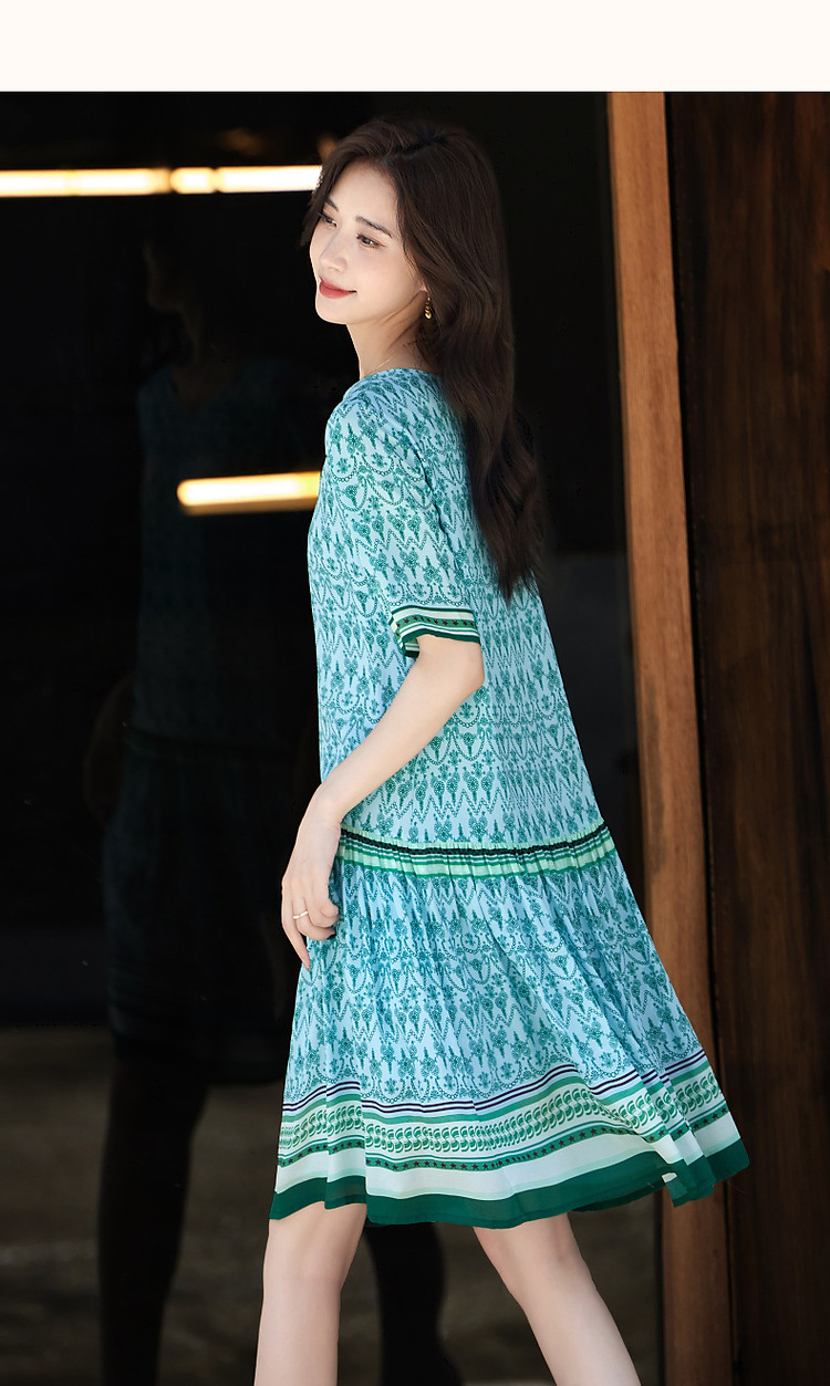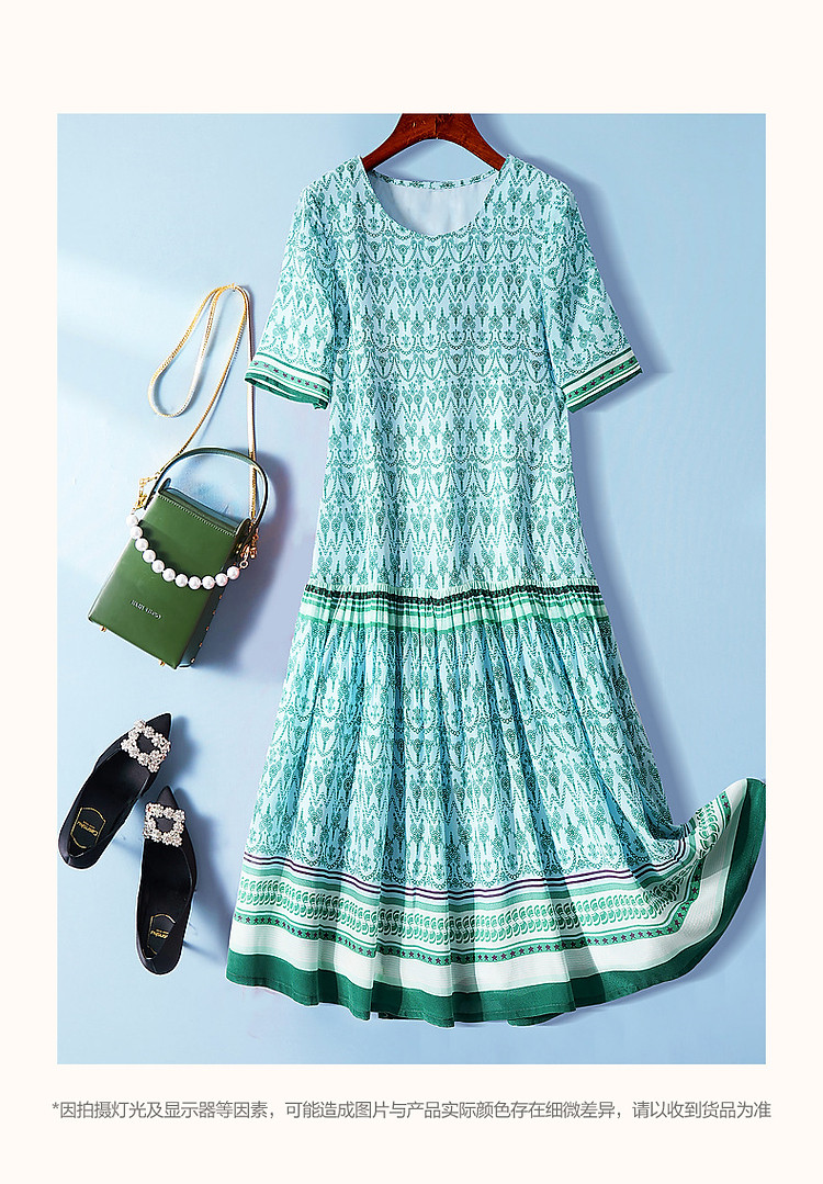 商品名称:【法式仙感氧气裙】夏奢享桑蚕丝定位印花藏肉连衣裙 729409
