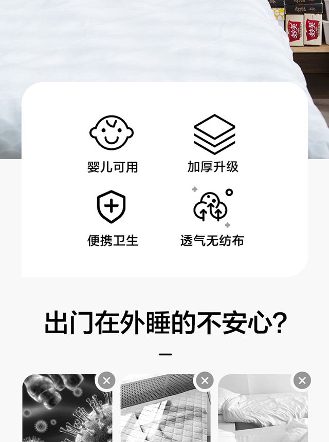 新鲜生活旅行四件套一次性床单被套出行酒店必备双人床尺寸