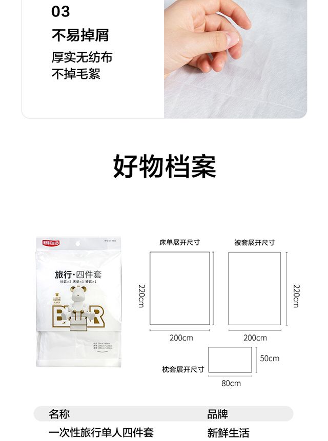 商品名称:新鲜生活旅行四件套一次性床单被套出行酒店必备双人床尺寸