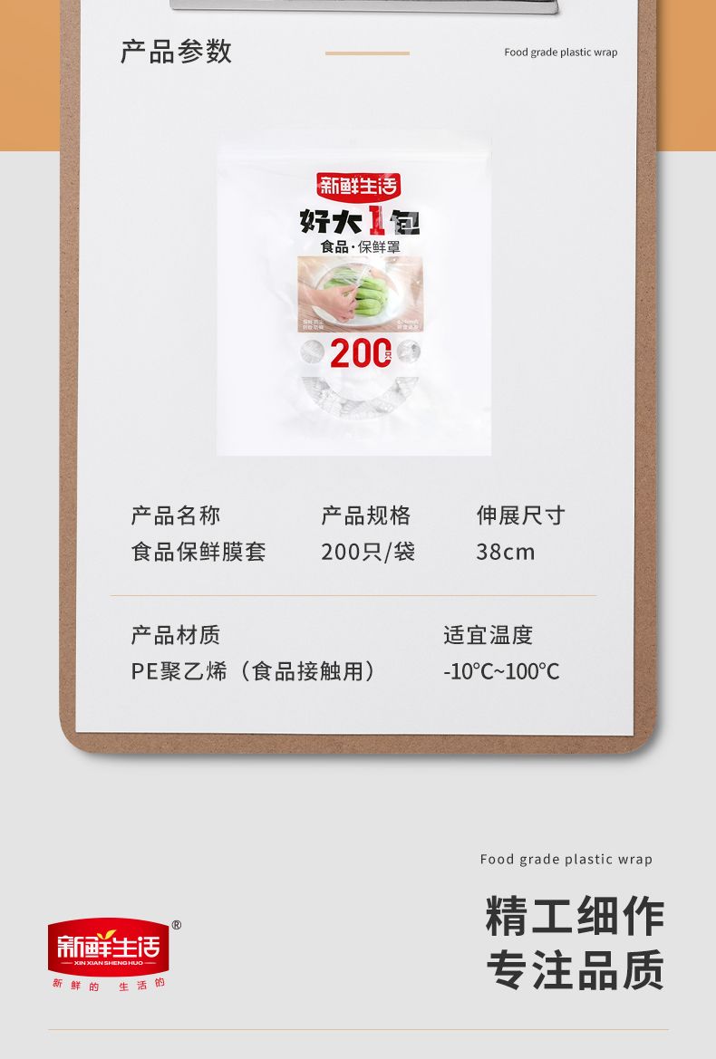 商品名称:新鲜生活一次性保鲜膜罩家用食品级接触用密封松紧口保鲜膜袋