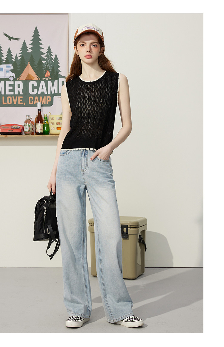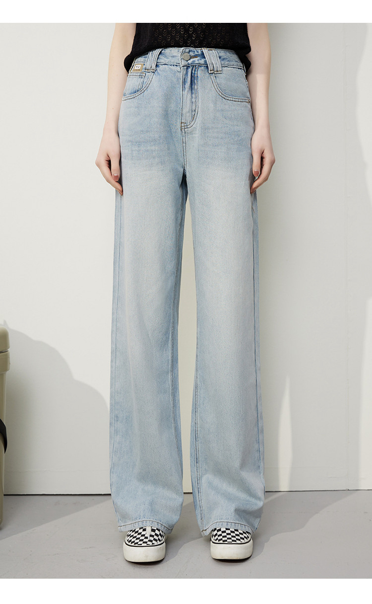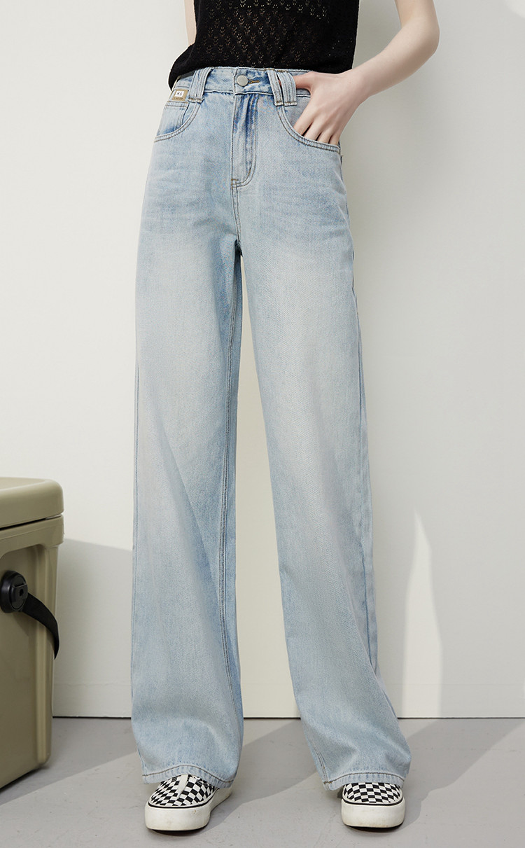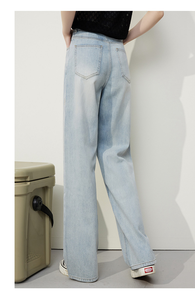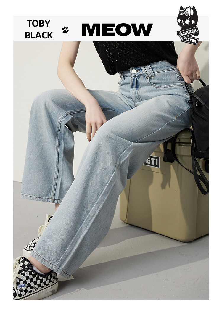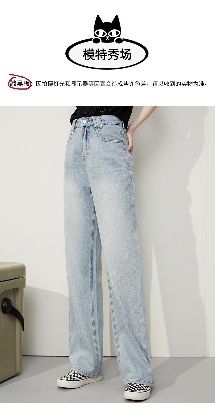 商品名称:浅色经典款高腰百搭拖地裤夏季遮肉显腿长休闲女式牛仔裤 931421