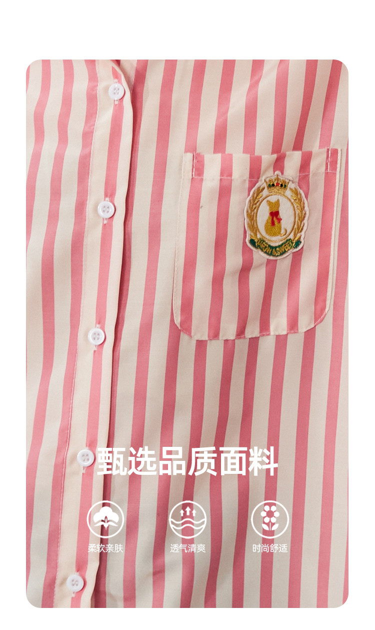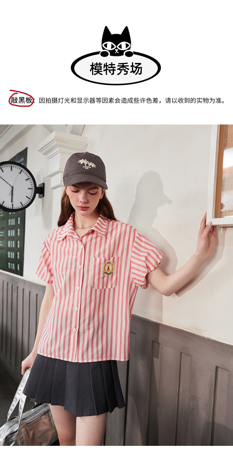 商品名称:【减龄学院风】条纹设计泡泡袖上衣夏季宽松休闲女式衬衫 385885