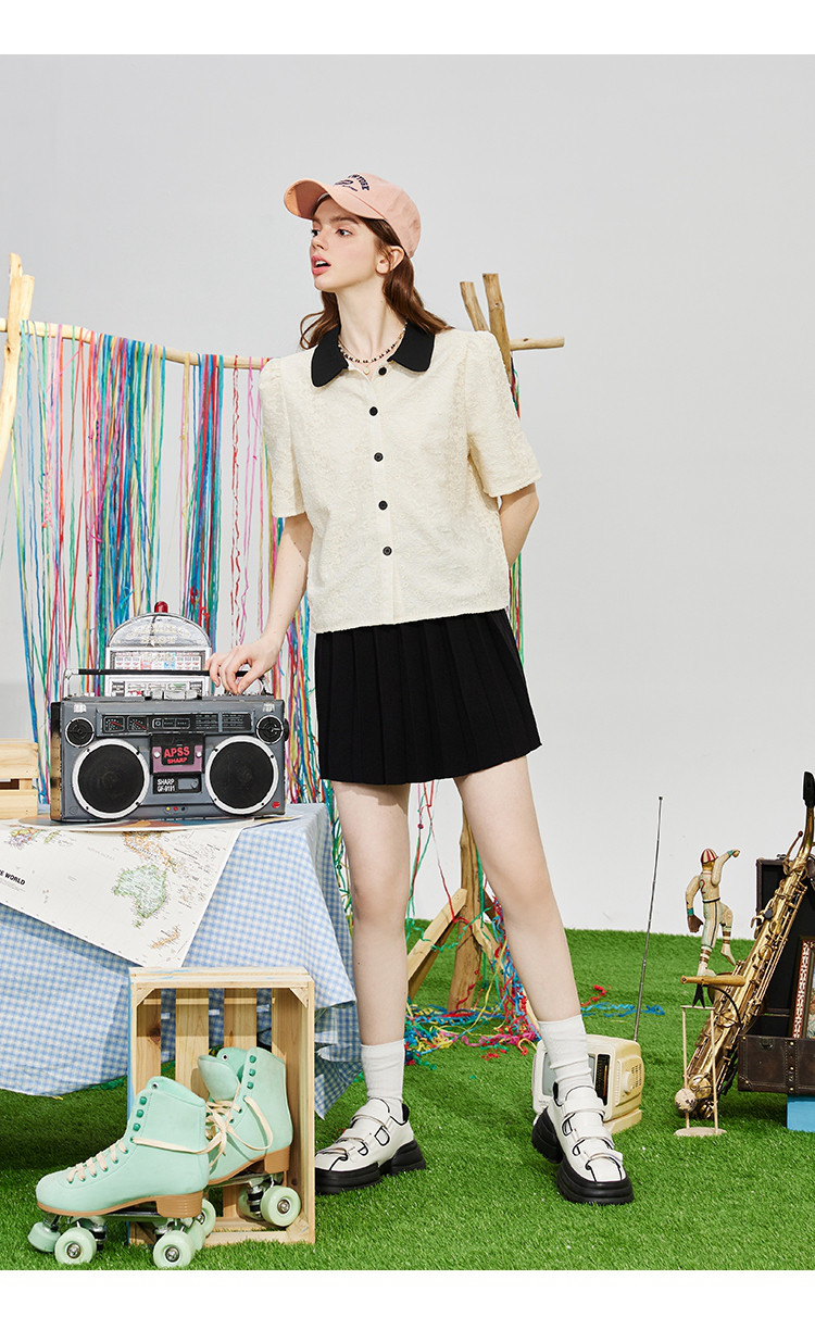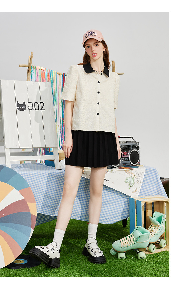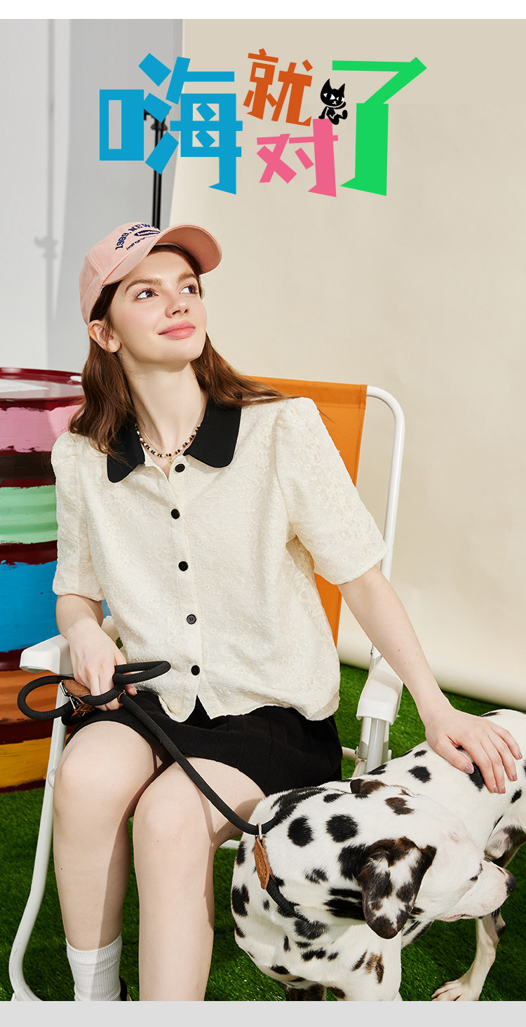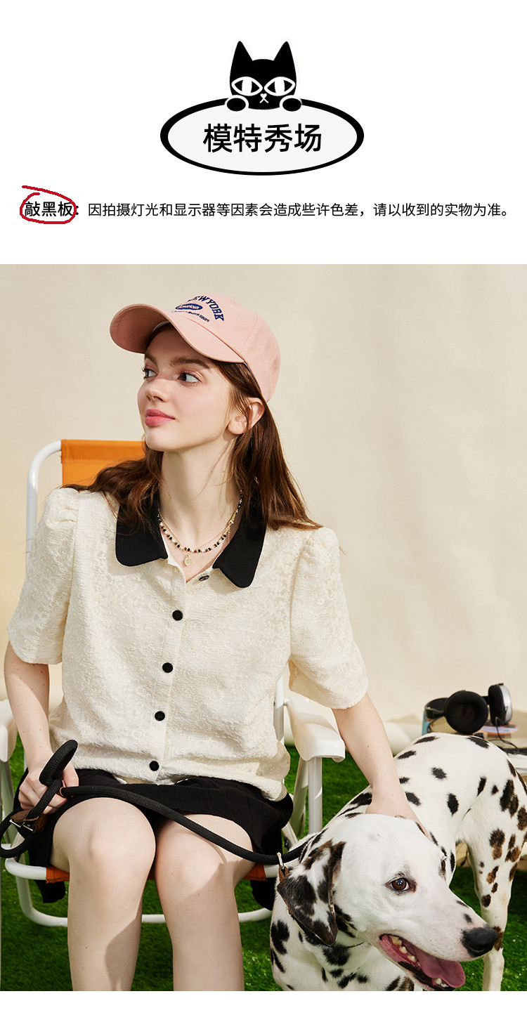 商品名称:蕾丝拼接小香风正肩小衫夏季撞色翻领气质女式衬衫 886237