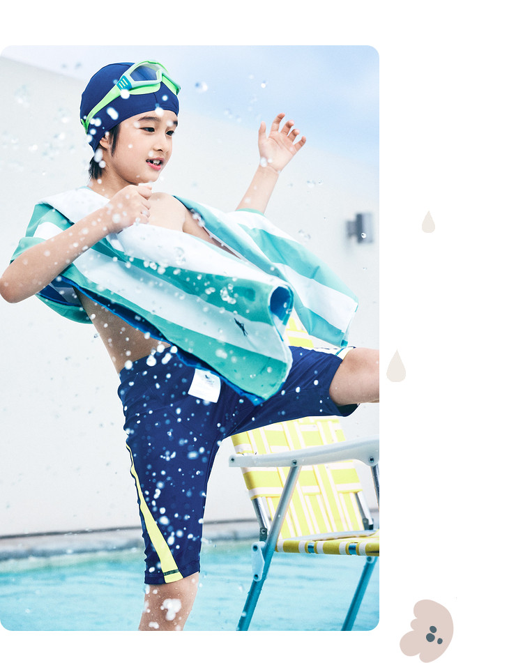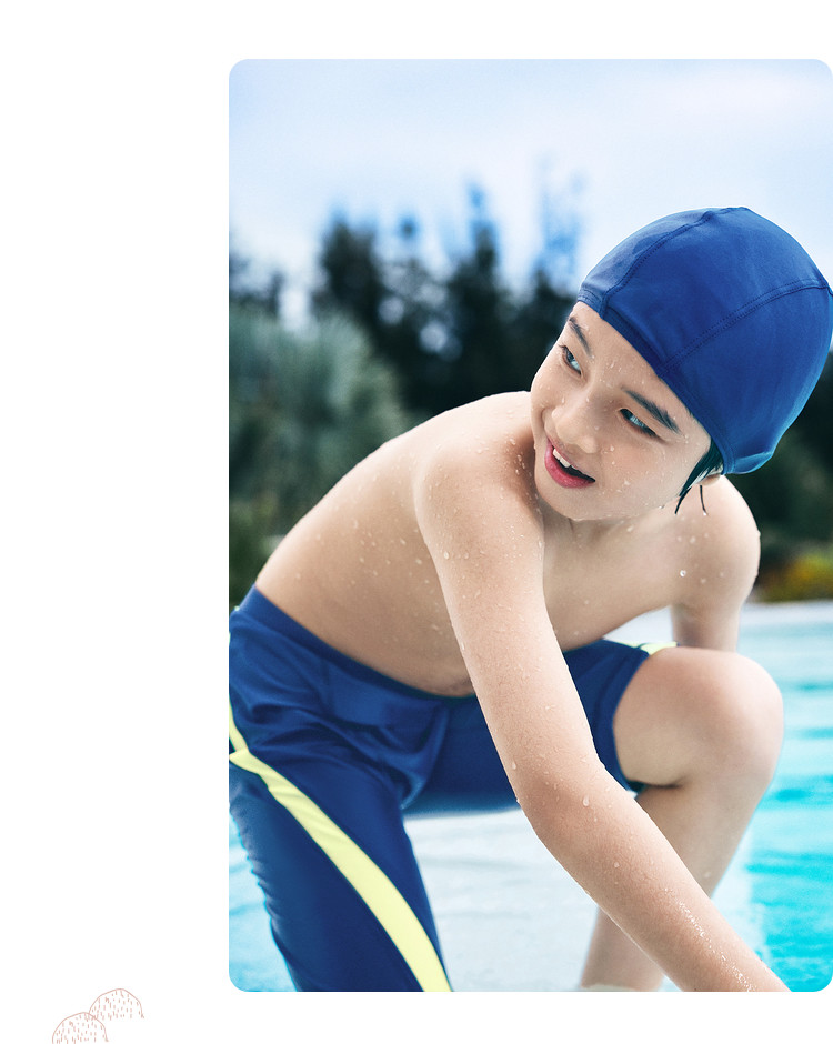 男童泳衣套装中大童泳装防晒青少年带帽子柔软弹力撞色潮游泳装备 873989