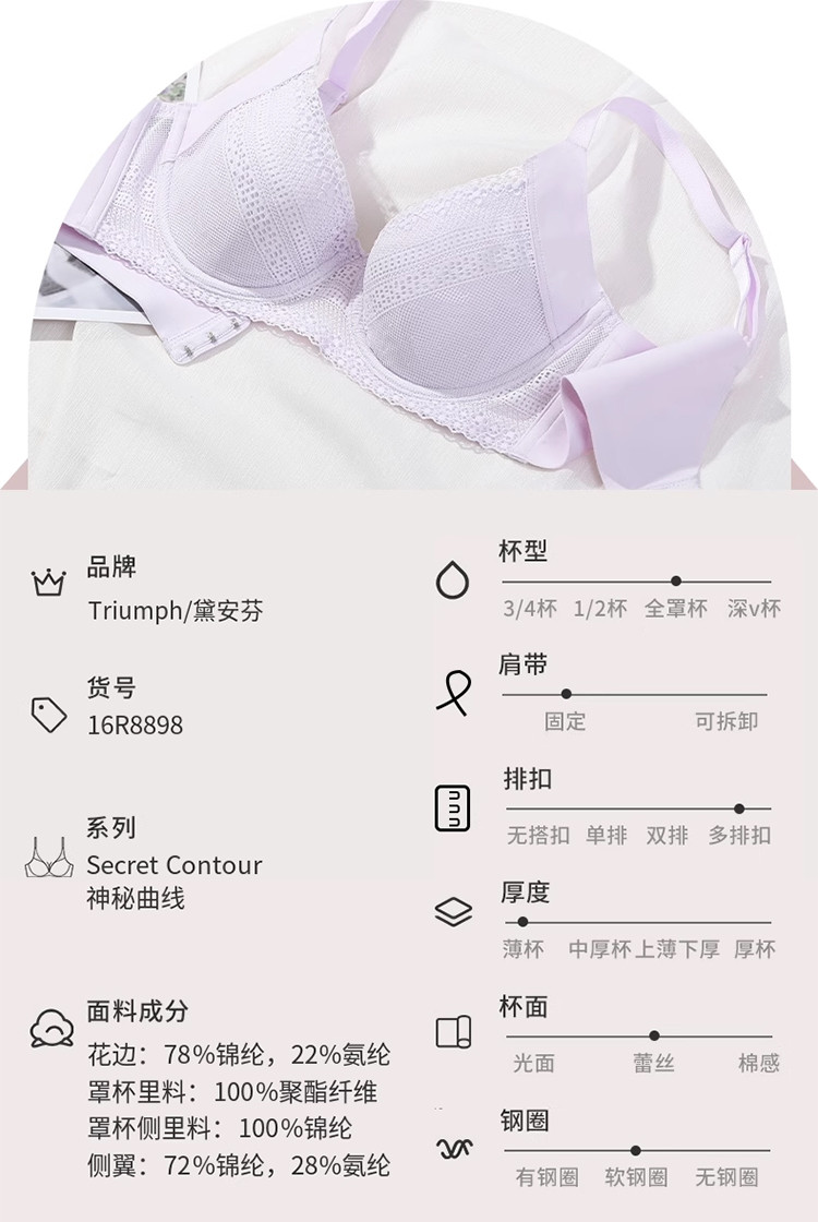商品名称:黛安芬神秘轮廓内衣女大胸显小侧收副乳文胸16R8898 476746