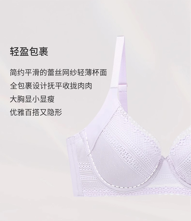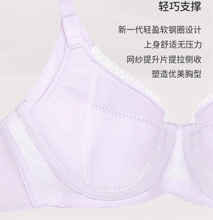 聚拢挺拔3D纤挺蕾丝刺绣美学华丽宫廷风宽侧收副乳女内衣文胸 970757