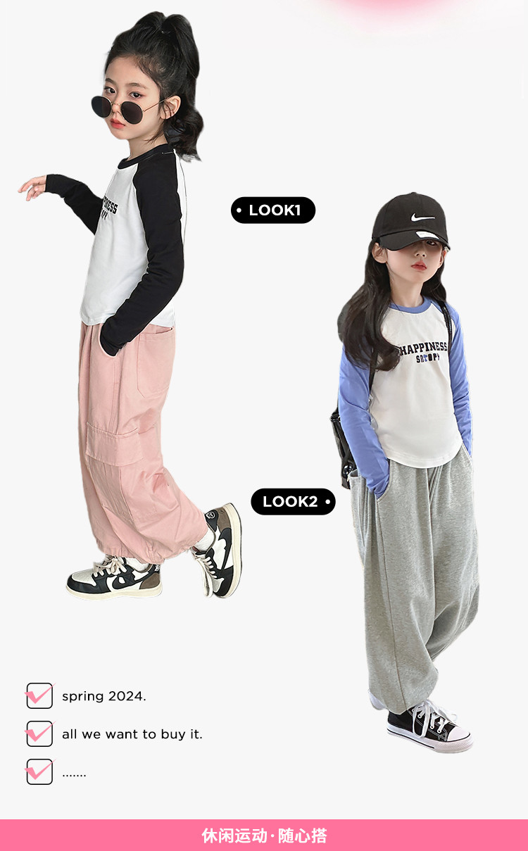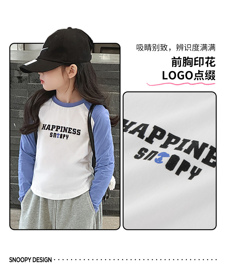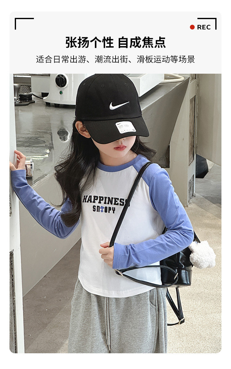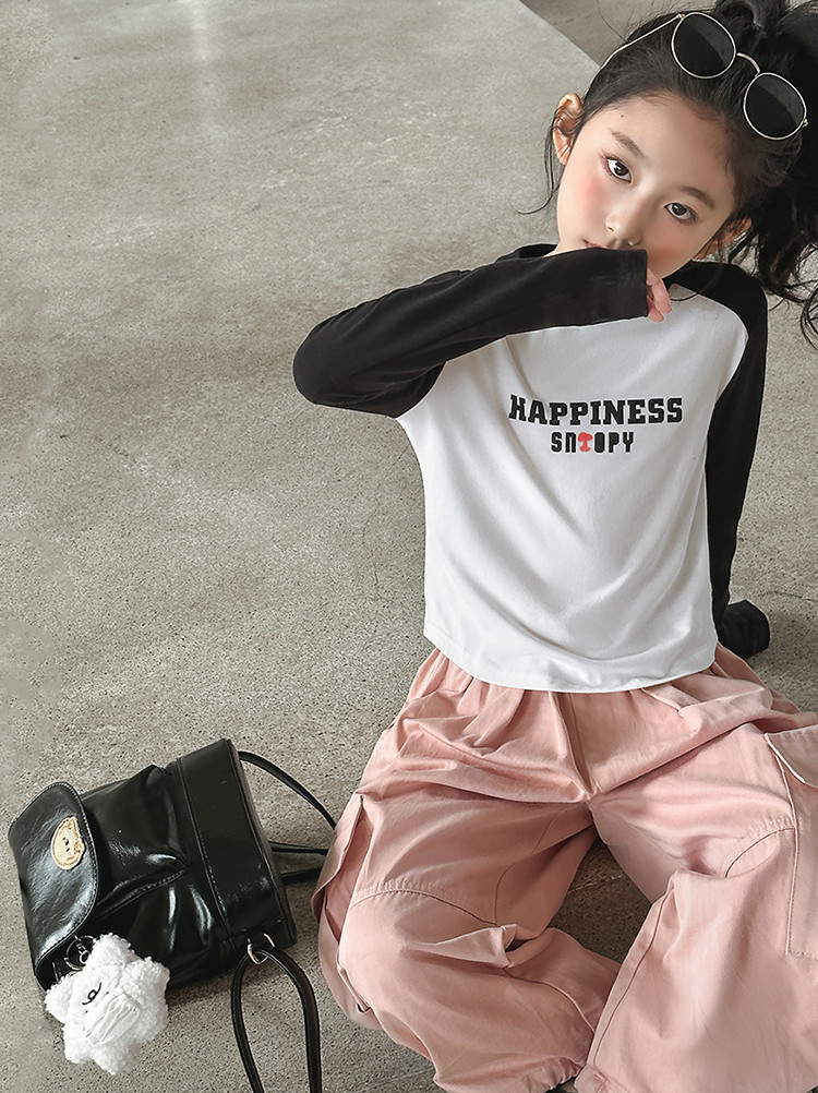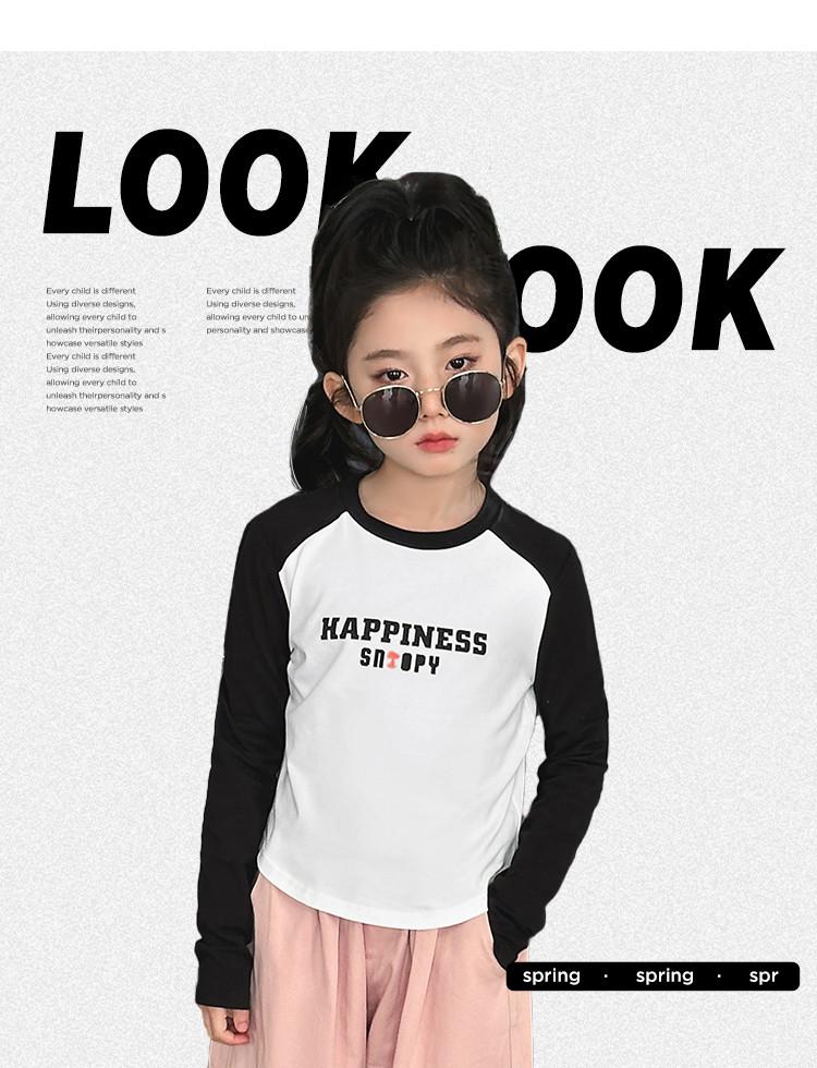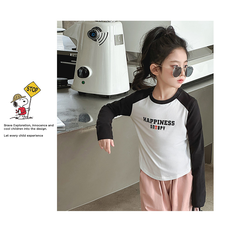 商品名称:【柔软字母印花】女童T恤春秋季大童撞色插肩袖上衣儿童时尚T恤 582488