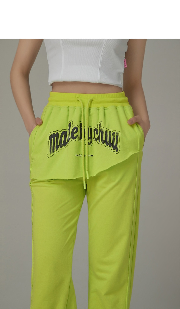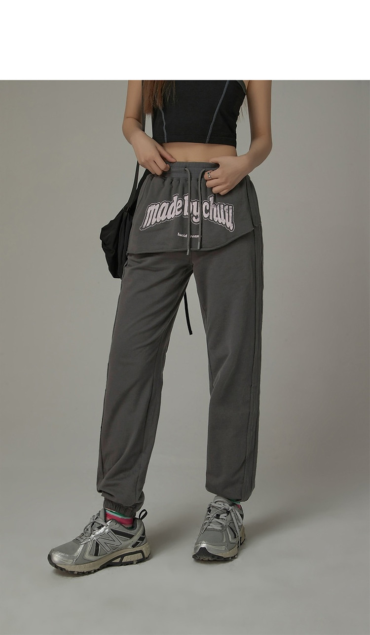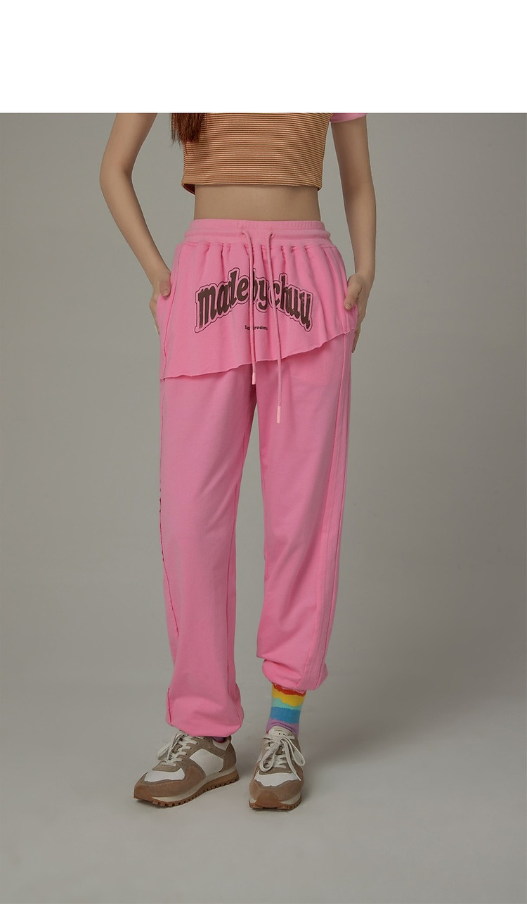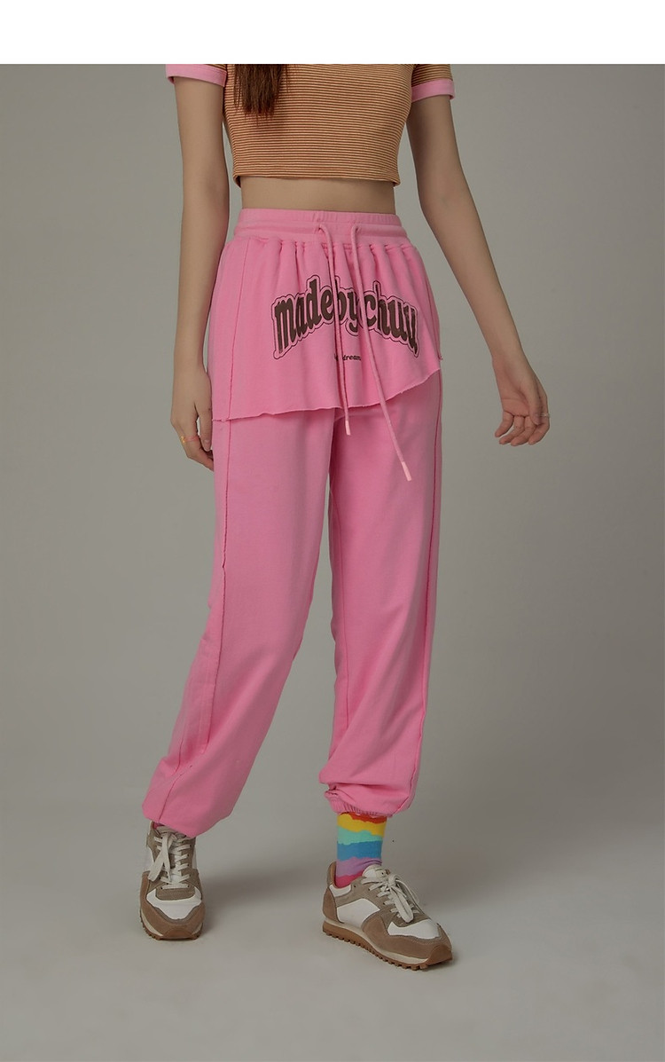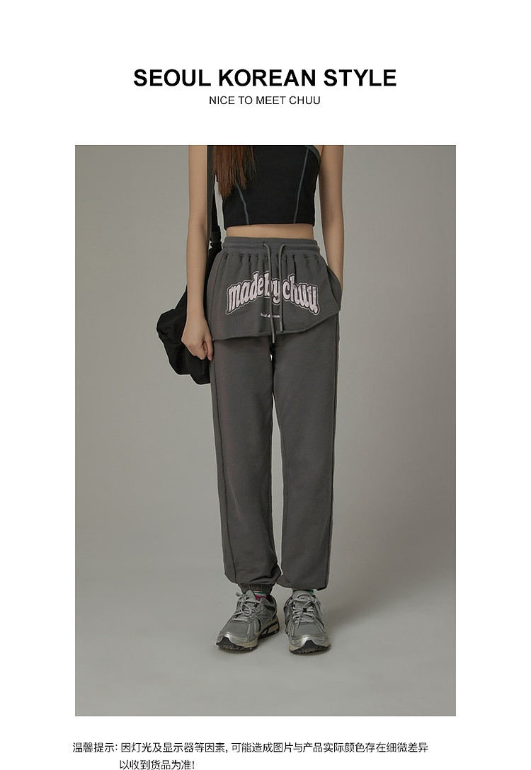 CHUU假两件休闲裤女夏字母印花抽绳薄束脚裤 397651