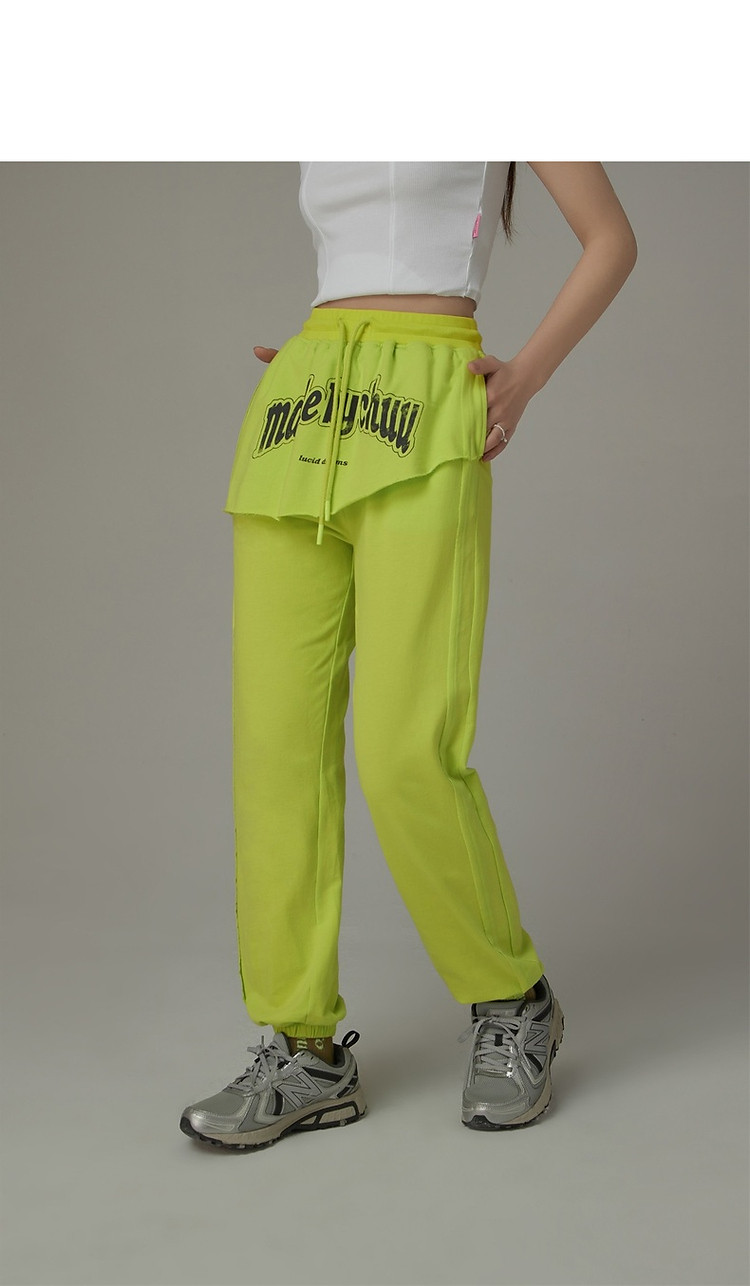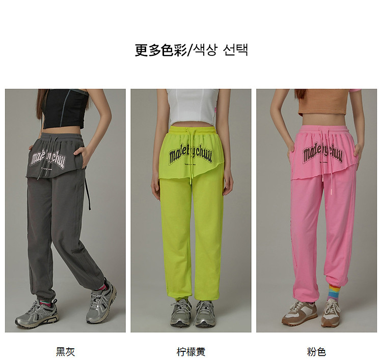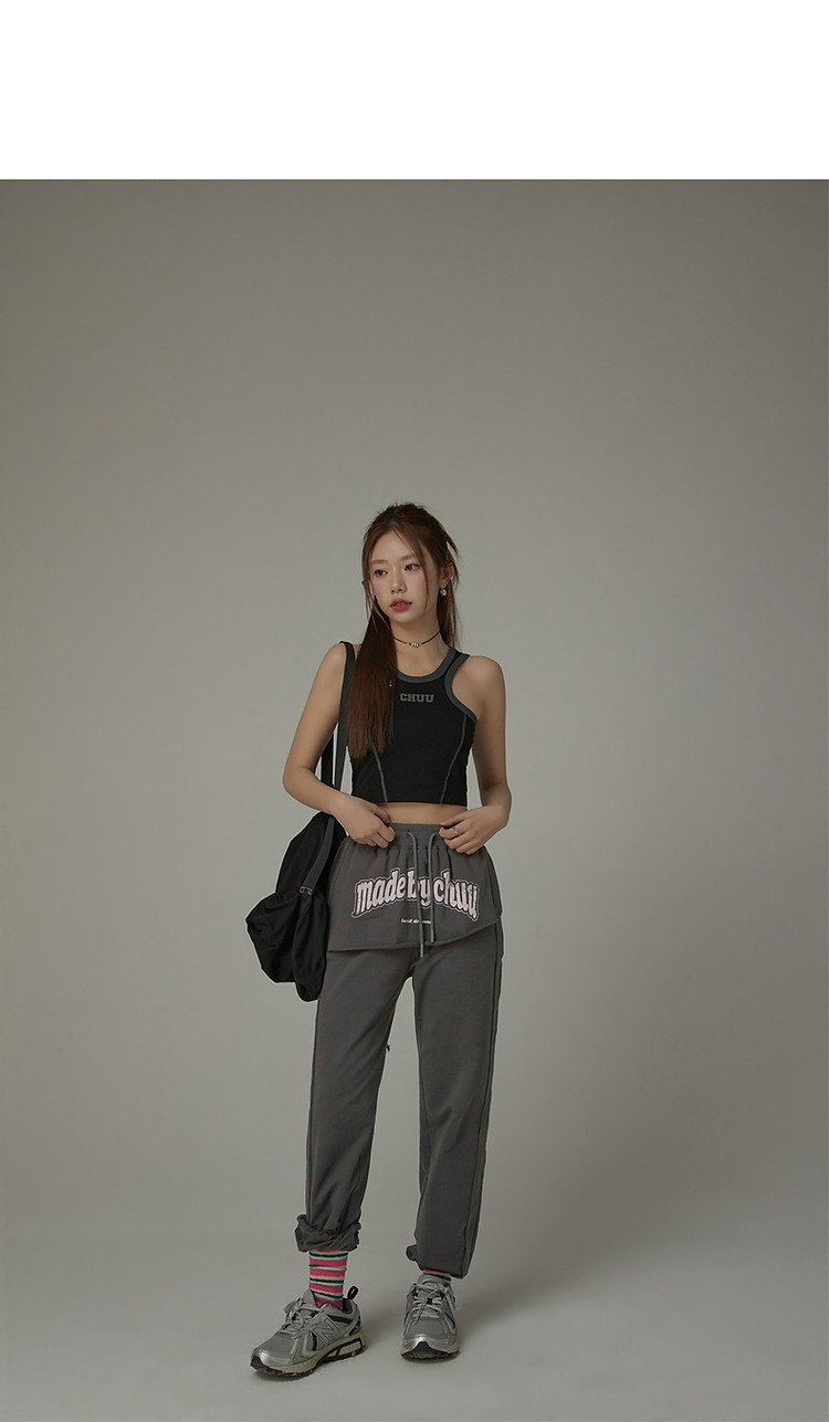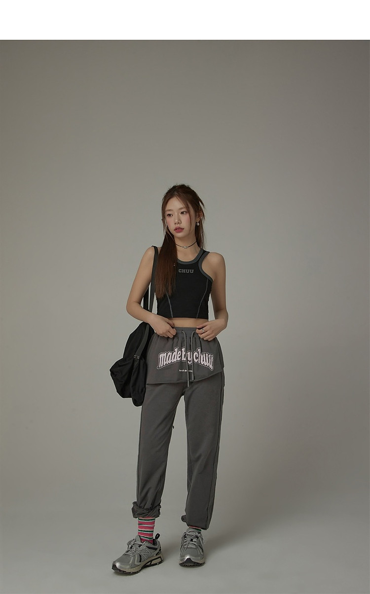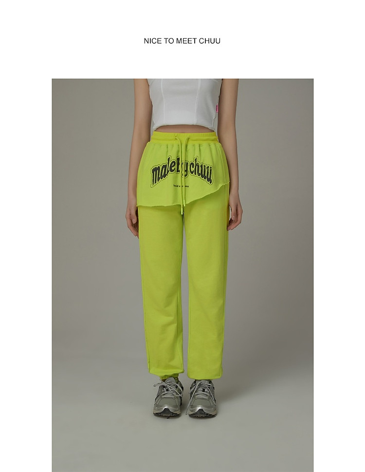 CHUU假两件休闲裤女夏字母印花抽绳薄束脚裤 397651
