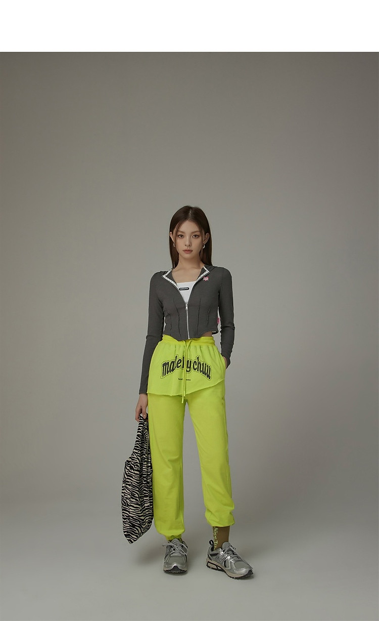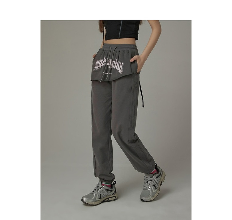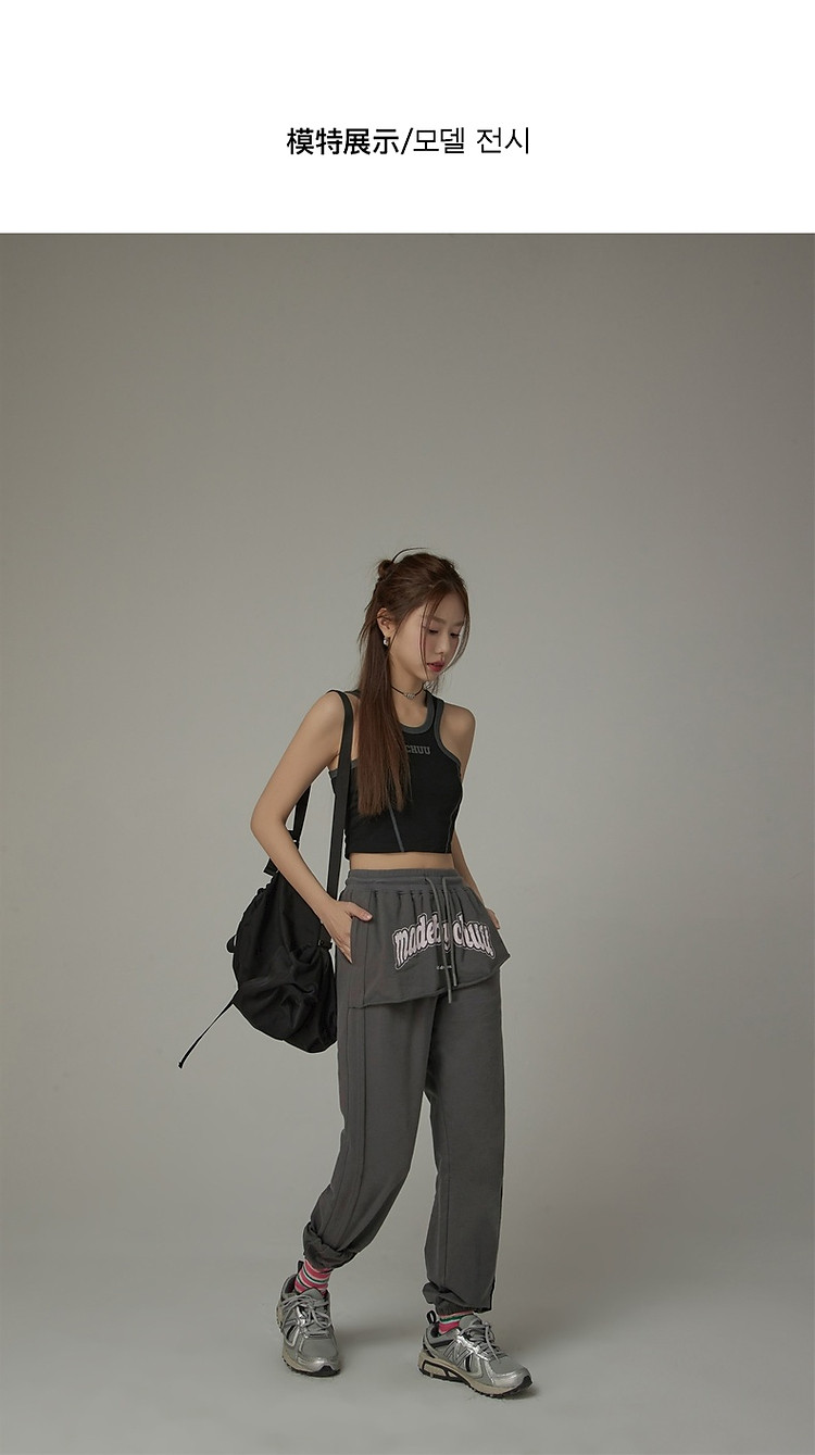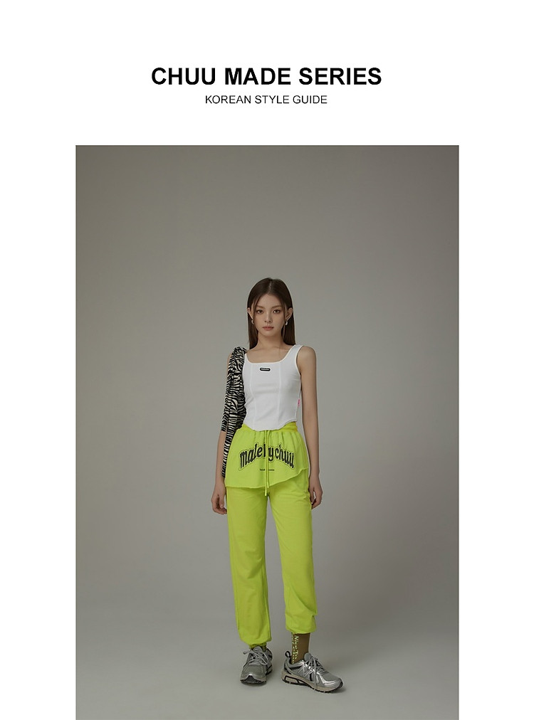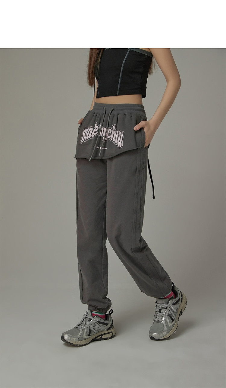 CHUU假两件休闲裤女夏字母印花抽绳薄束脚裤 397651