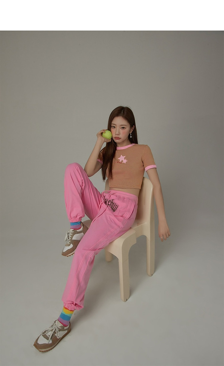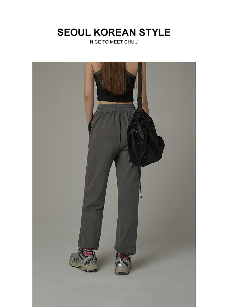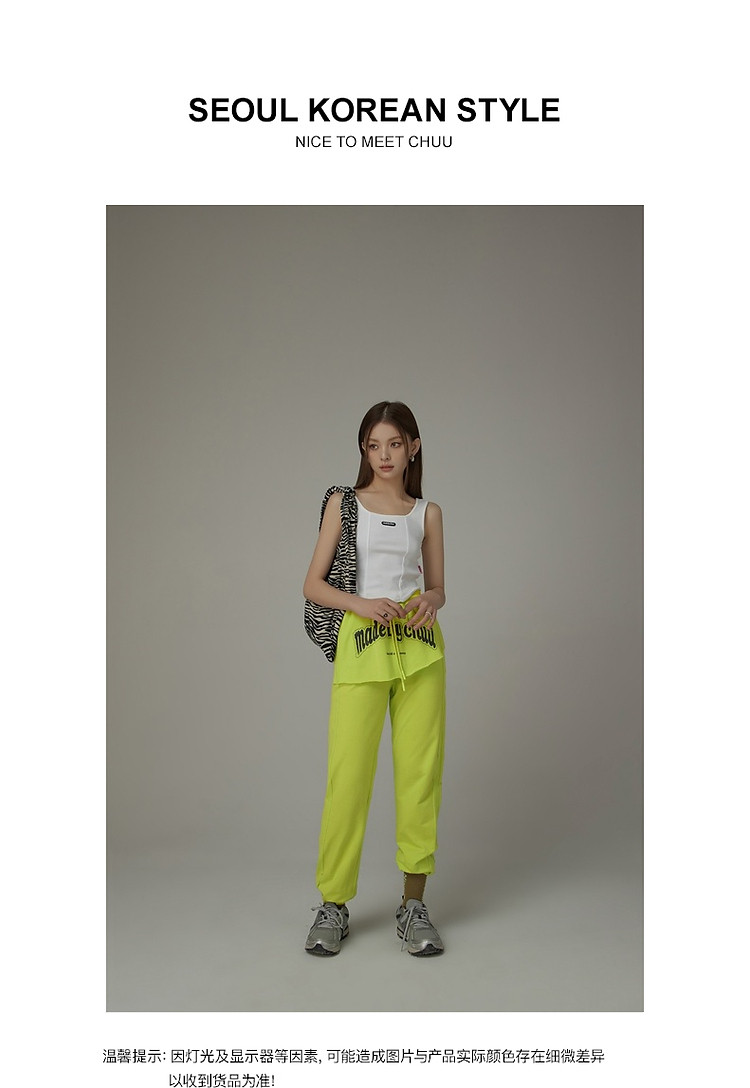 商品名称:CHUU假两件休闲裤女夏字母印花抽绳薄束脚裤 397651