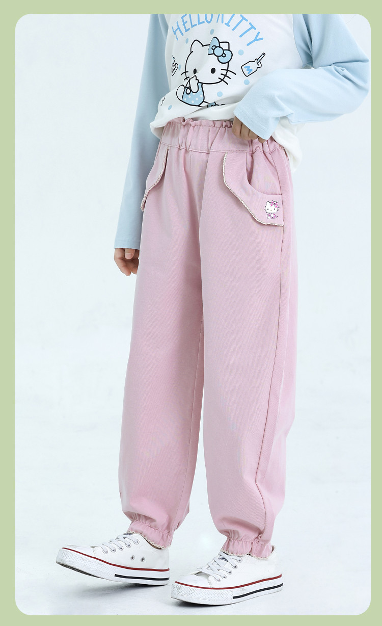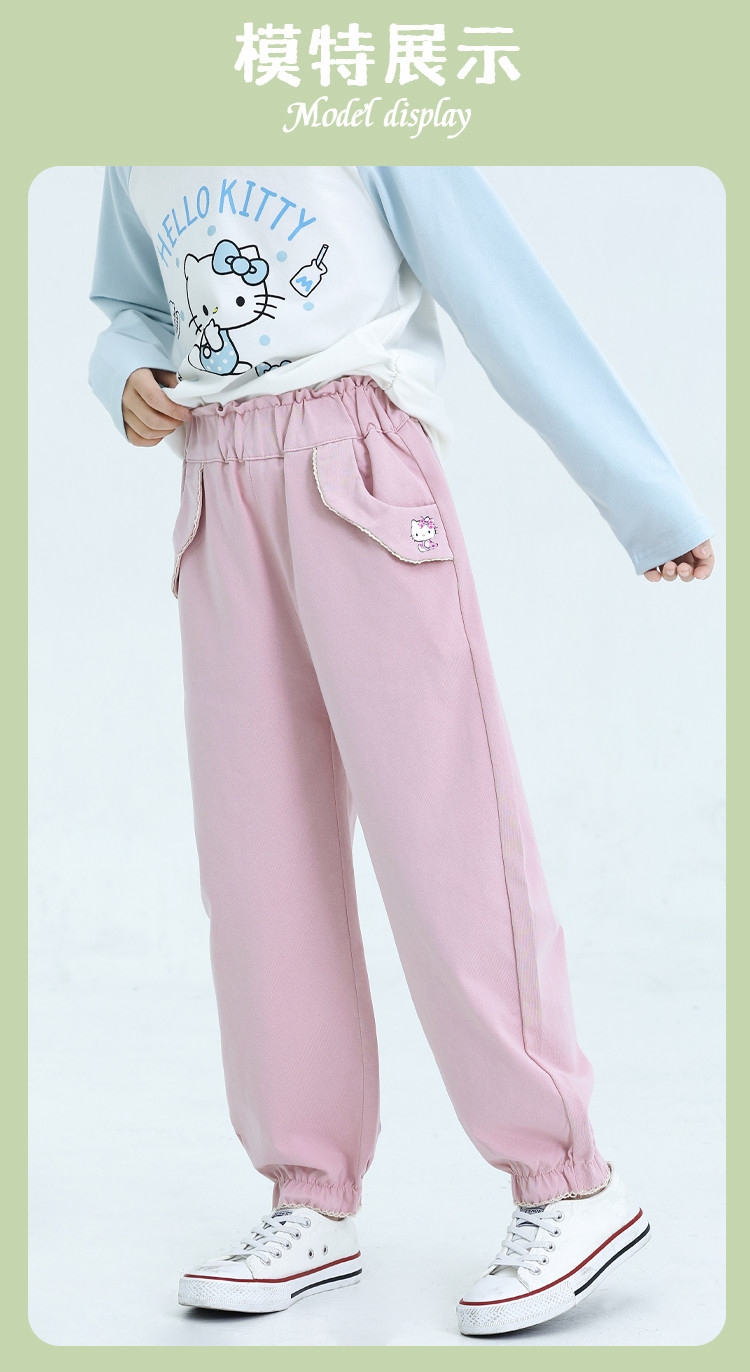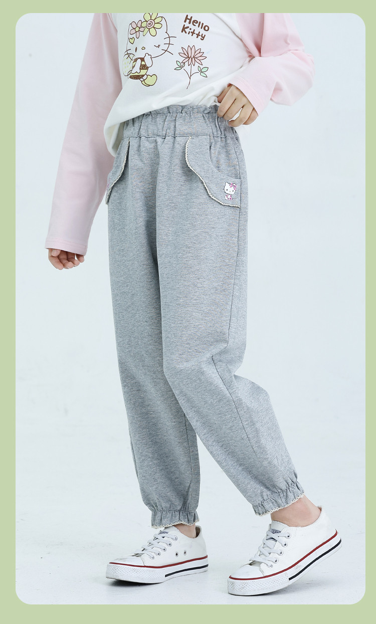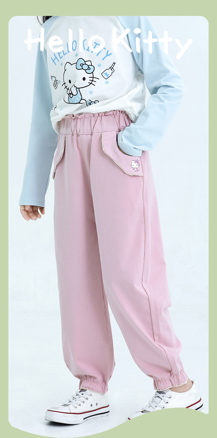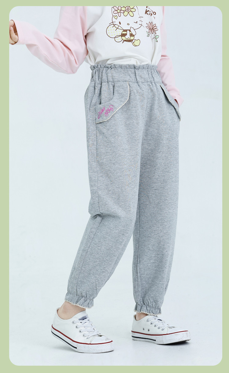 商品名称:女童长裤春夏新品中大童针织花边束脚裤宽松百搭立体口袋休闲裤子 934849