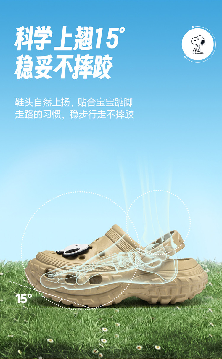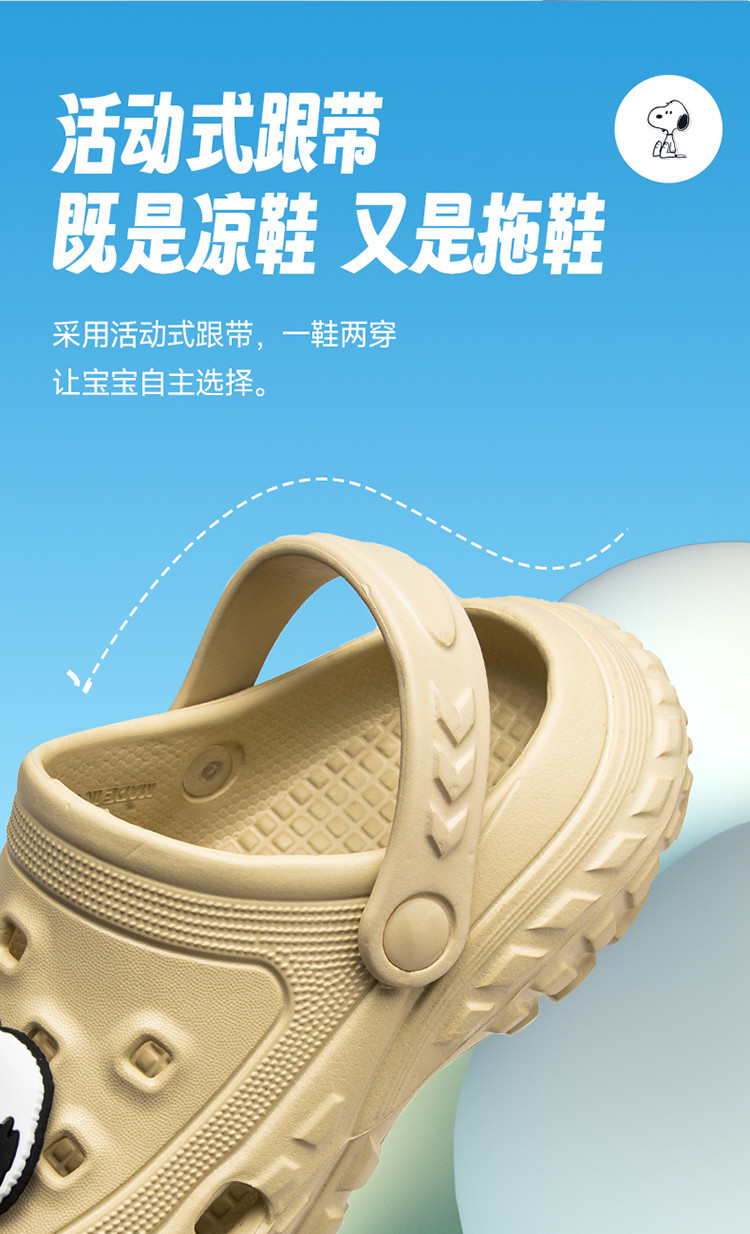 史努比春秋季男女童宝宝家居拖鞋舒适好看中大童儿童洞洞鞋 914205