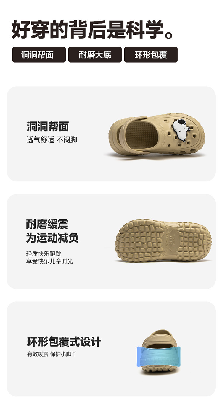 商品名称:史努比春秋季男女童宝宝家居拖鞋舒适好看中大童儿童洞洞鞋 914205