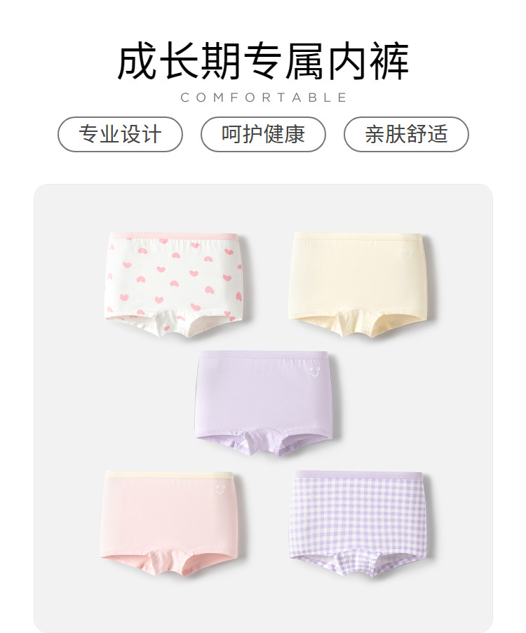 五条装纯棉裆成长期儿童内裤男童女童内裤三四角裤平角短裤薄透气 582533