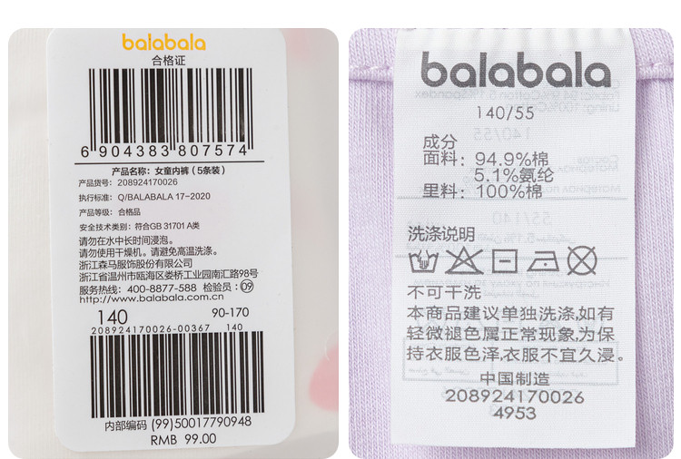 商品名称:五条装纯棉裆成长期儿童内裤男童女童内裤三四角裤平角短裤薄透气 582533