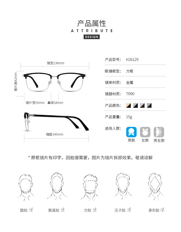 商品名称:海伦凯勒商务男士光眼镜简约方框近视眼镜框架 225179