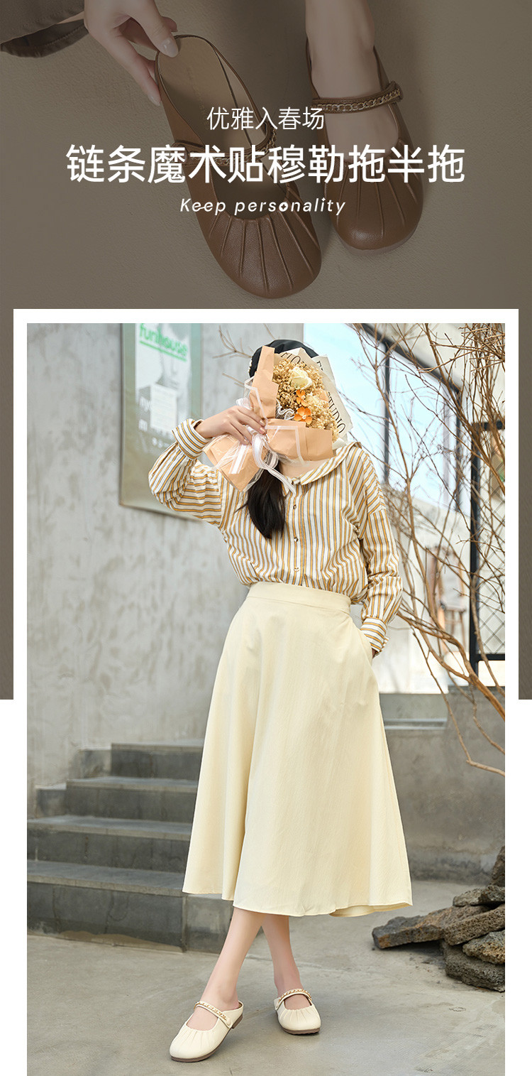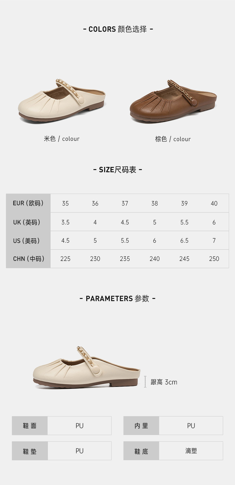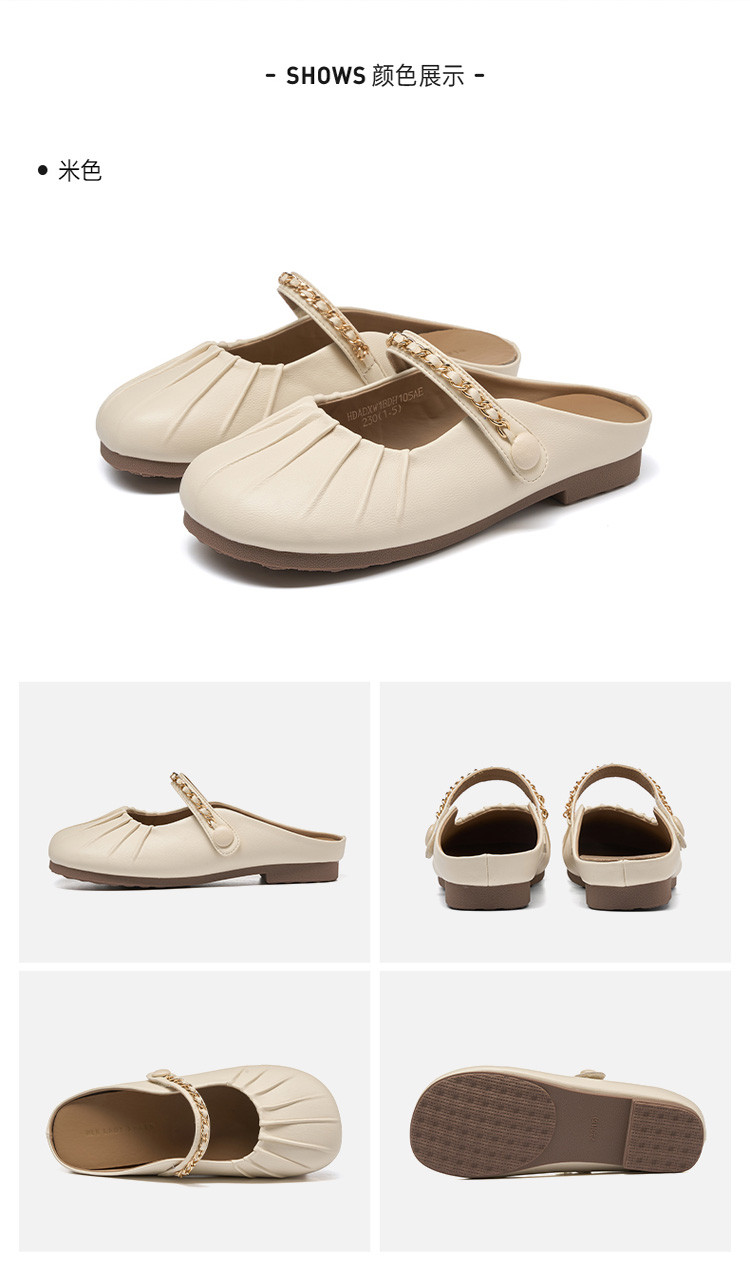 商品名称:女鞋复古学院风褶皱鞋休闲百搭穆勒半拖通勤女单鞋 976399