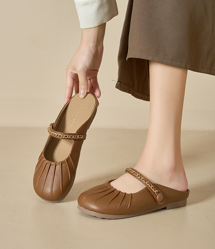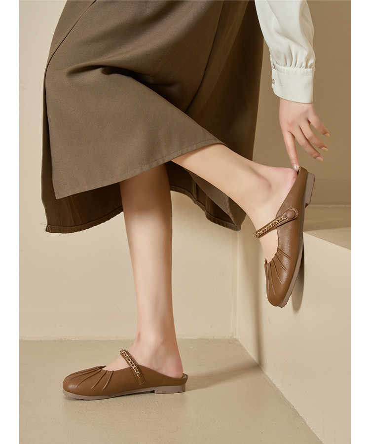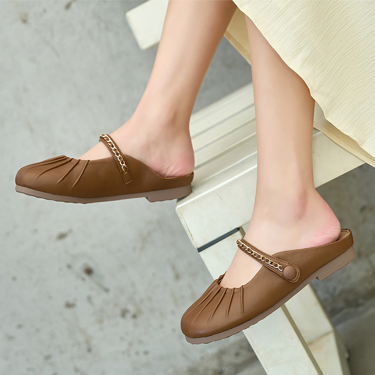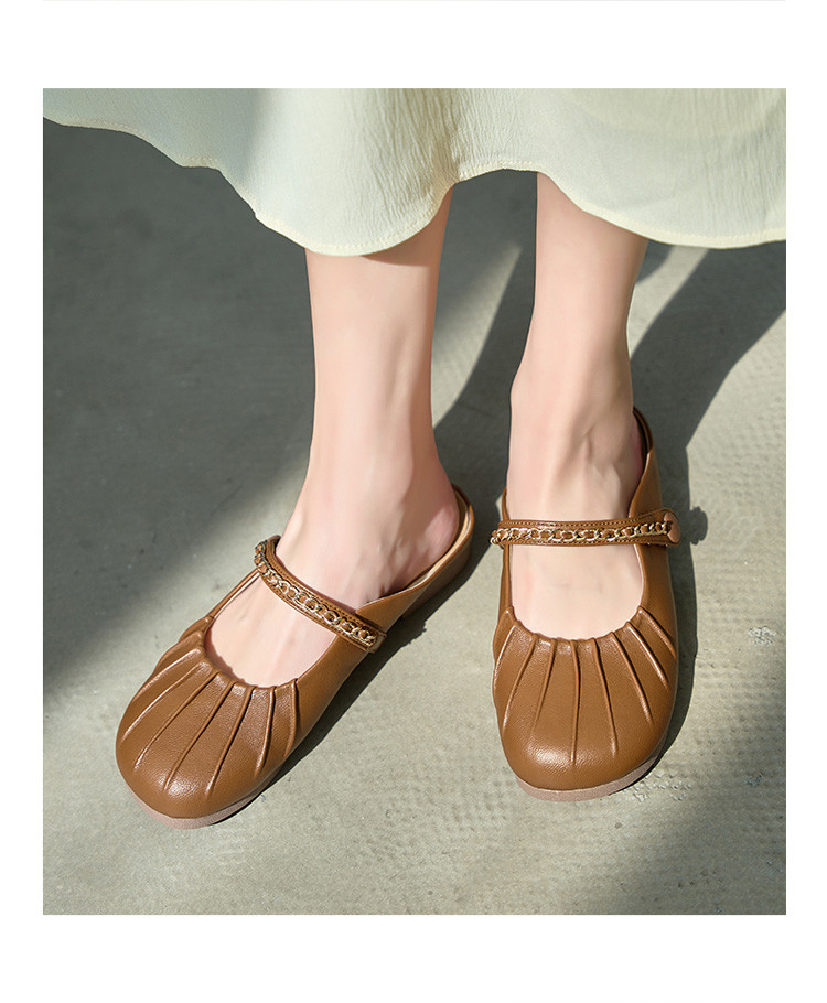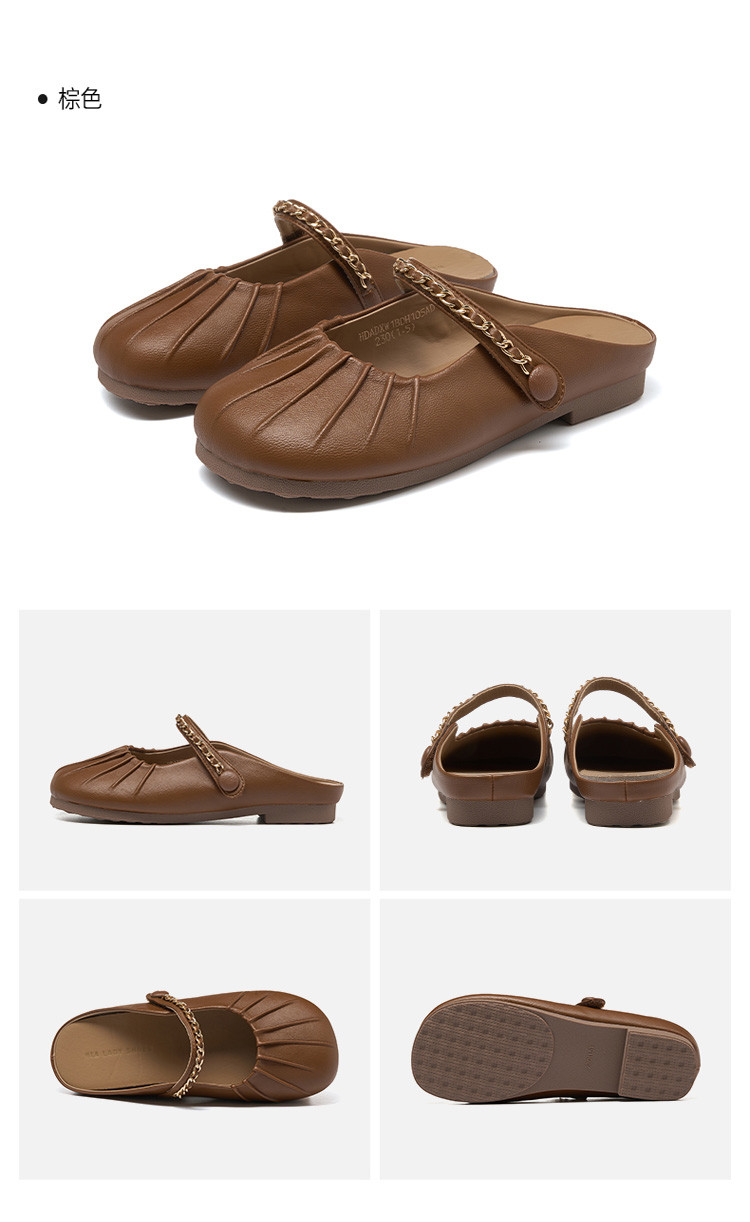 女鞋复古学院风褶皱鞋休闲百搭穆勒半拖通勤女单鞋 976399