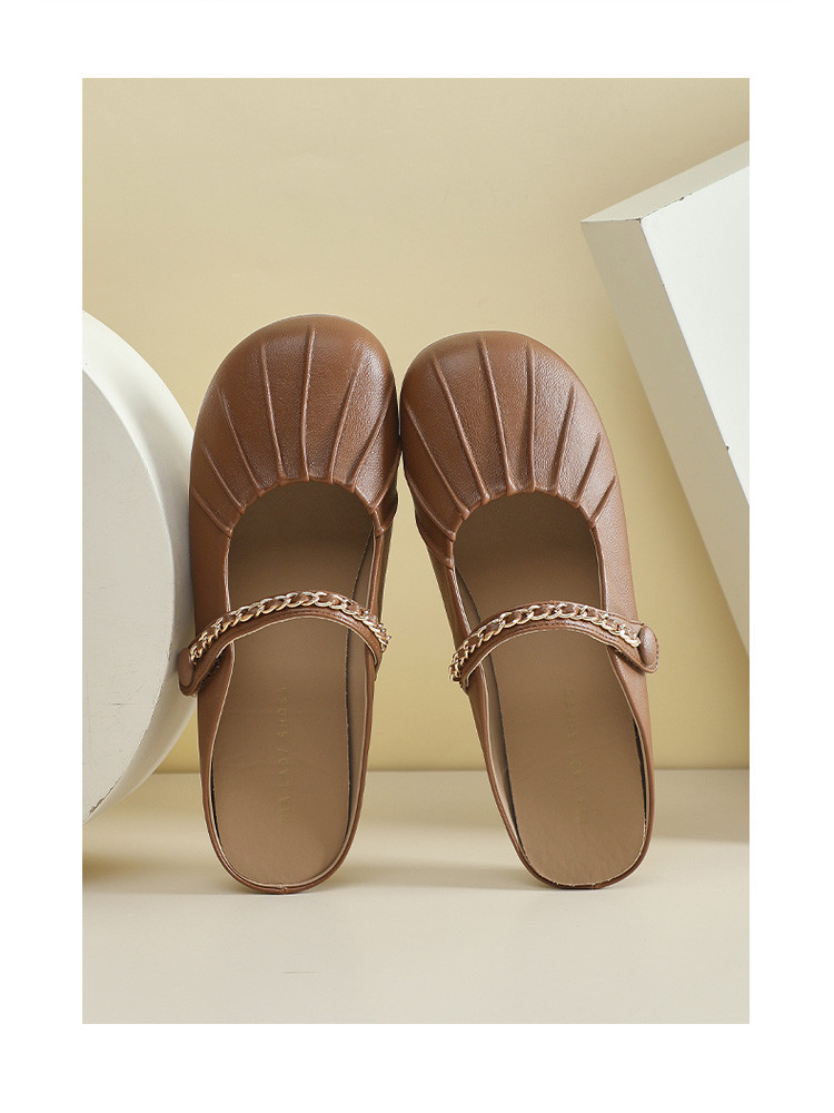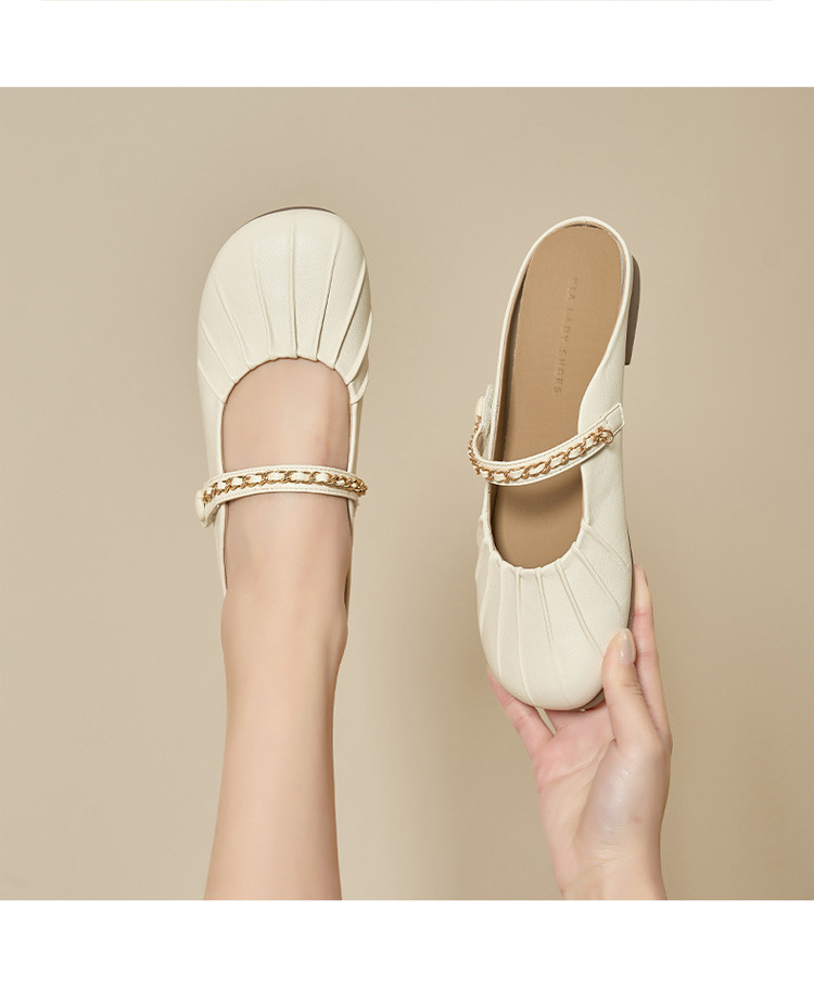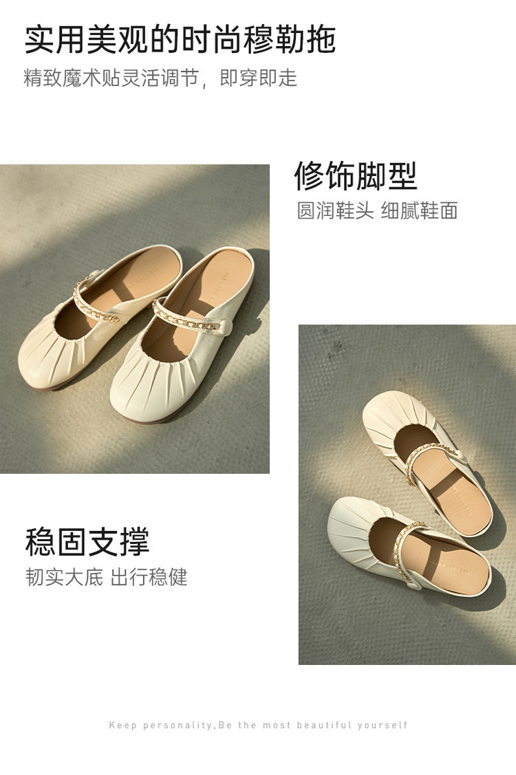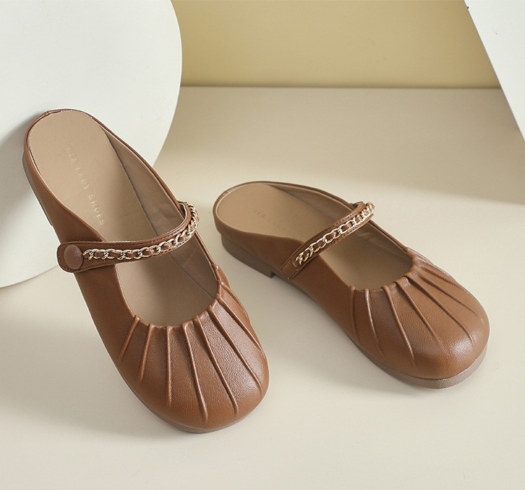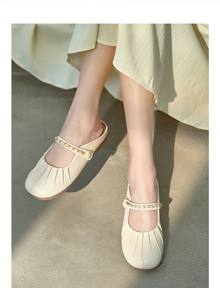 女鞋复古学院风褶皱鞋休闲百搭穆勒半拖通勤女单鞋 976399
