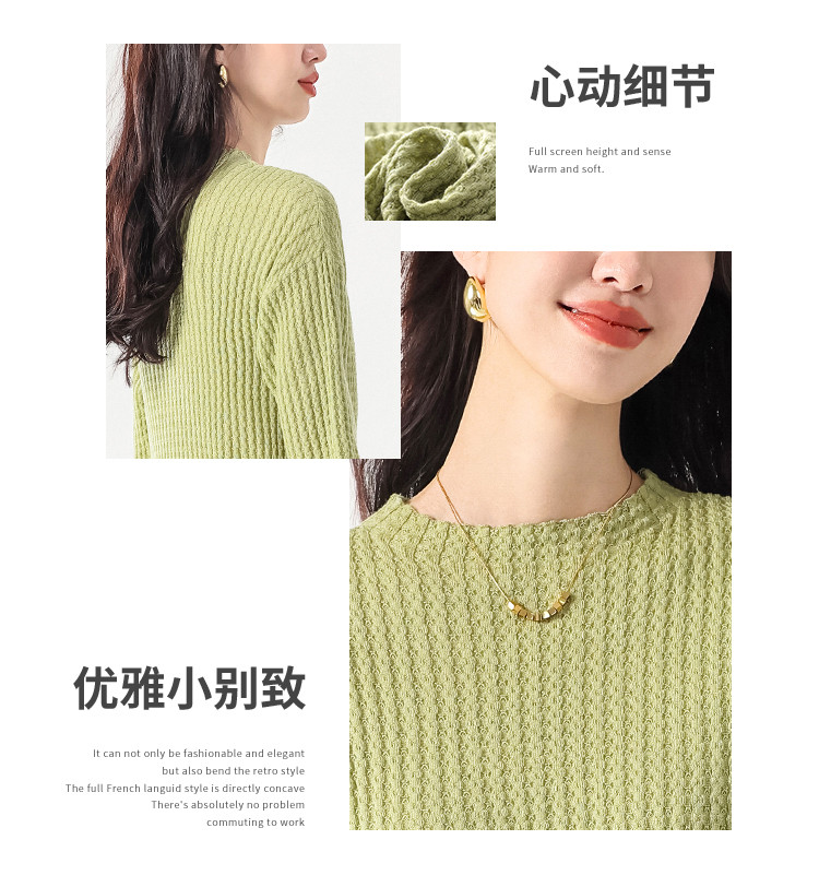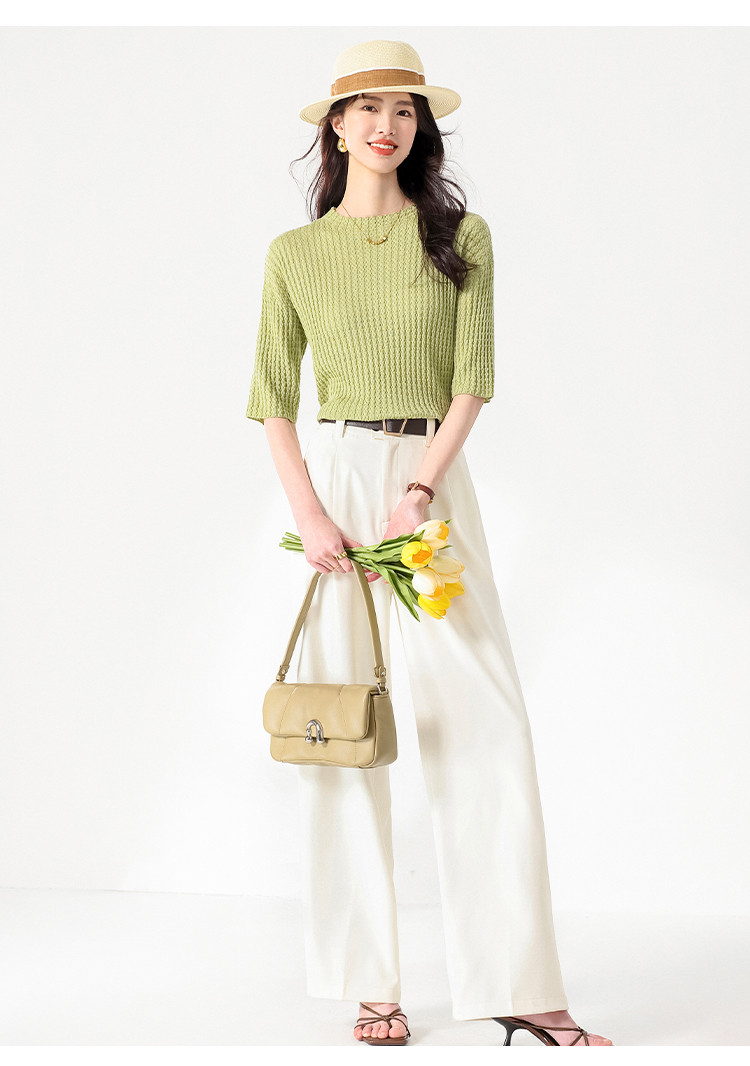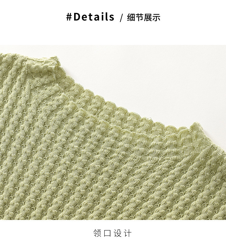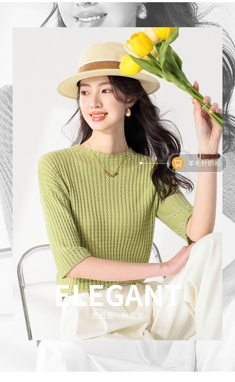 商品名称:轻薄透气纯色泡泡提花圆领含桑蚕丝针织衫女夏打底衫短袖T恤 357779