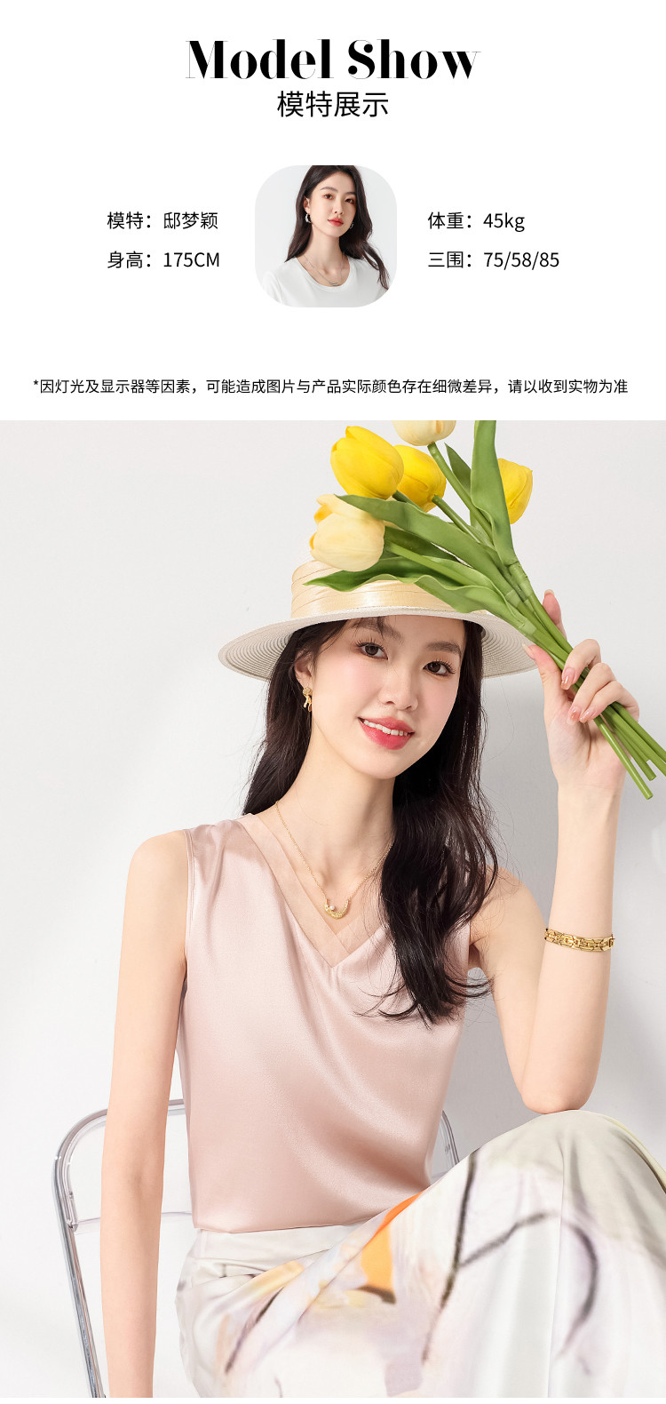 商品名称:【16姆米】纯色V领桑蚕丝背心吊带无袖衬衣内搭 797651
