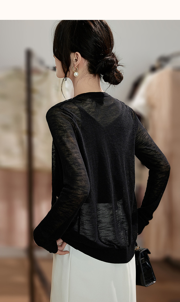 【简约风开衫】夏轻熟V领空调衫云柔感薄线衫长袖针织衫女上衣 382785