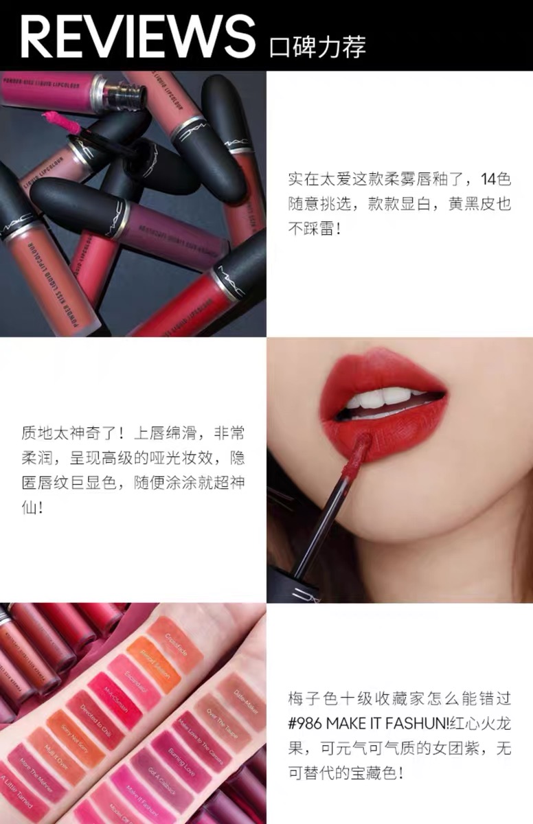 商品名称:MAC/魅可 柔雾尤雾弹唇釉雾面哑光口红唇彩 5ml 多色号可选