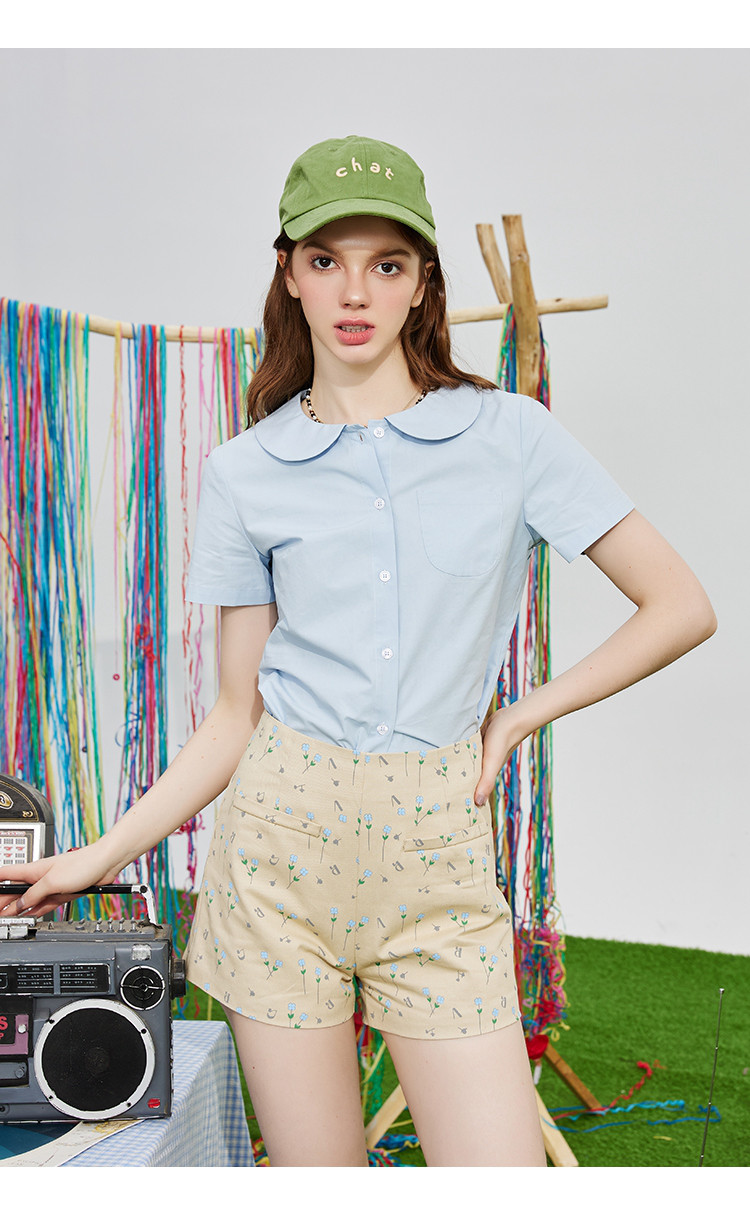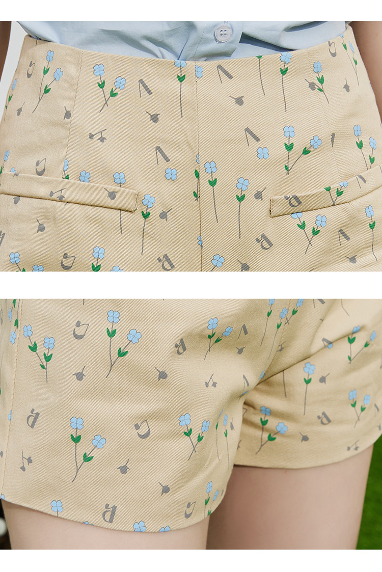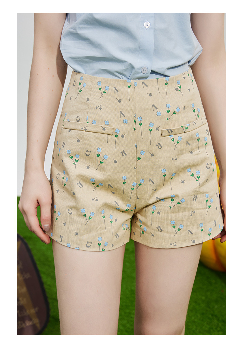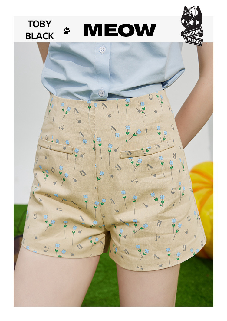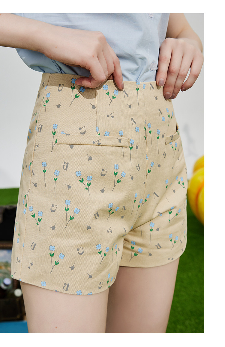 高腰复古小碎花浅色短裤夏季小清新百搭女式休闲裤 021341