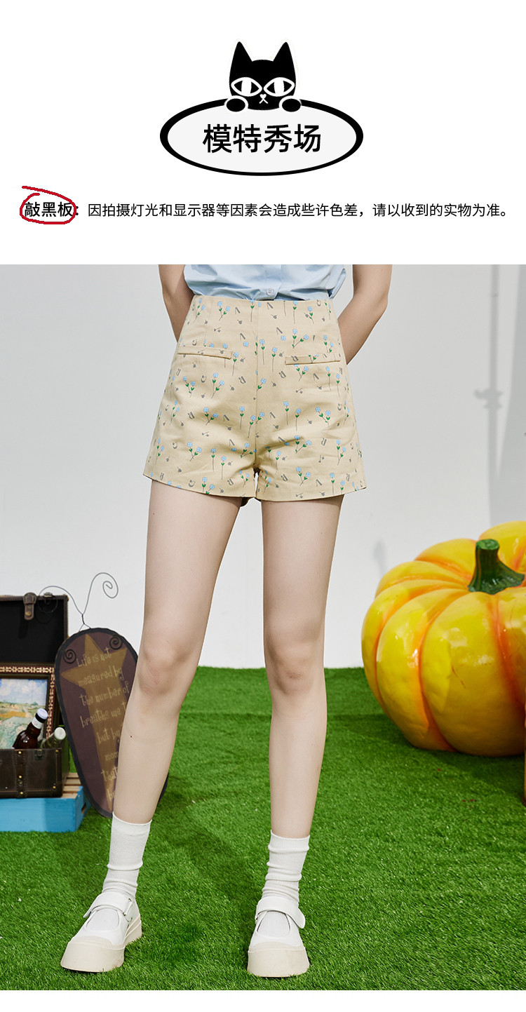 商品名称:高腰复古小碎花浅色短裤夏季小清新百搭女式休闲裤 021341