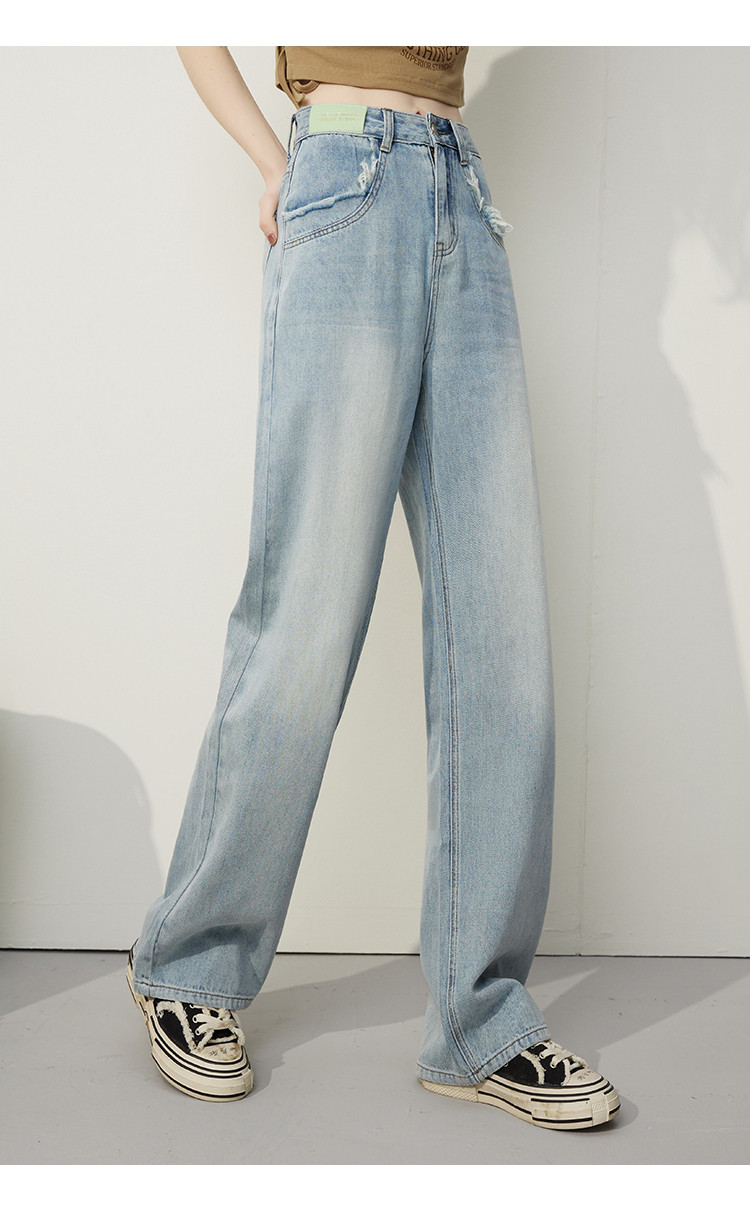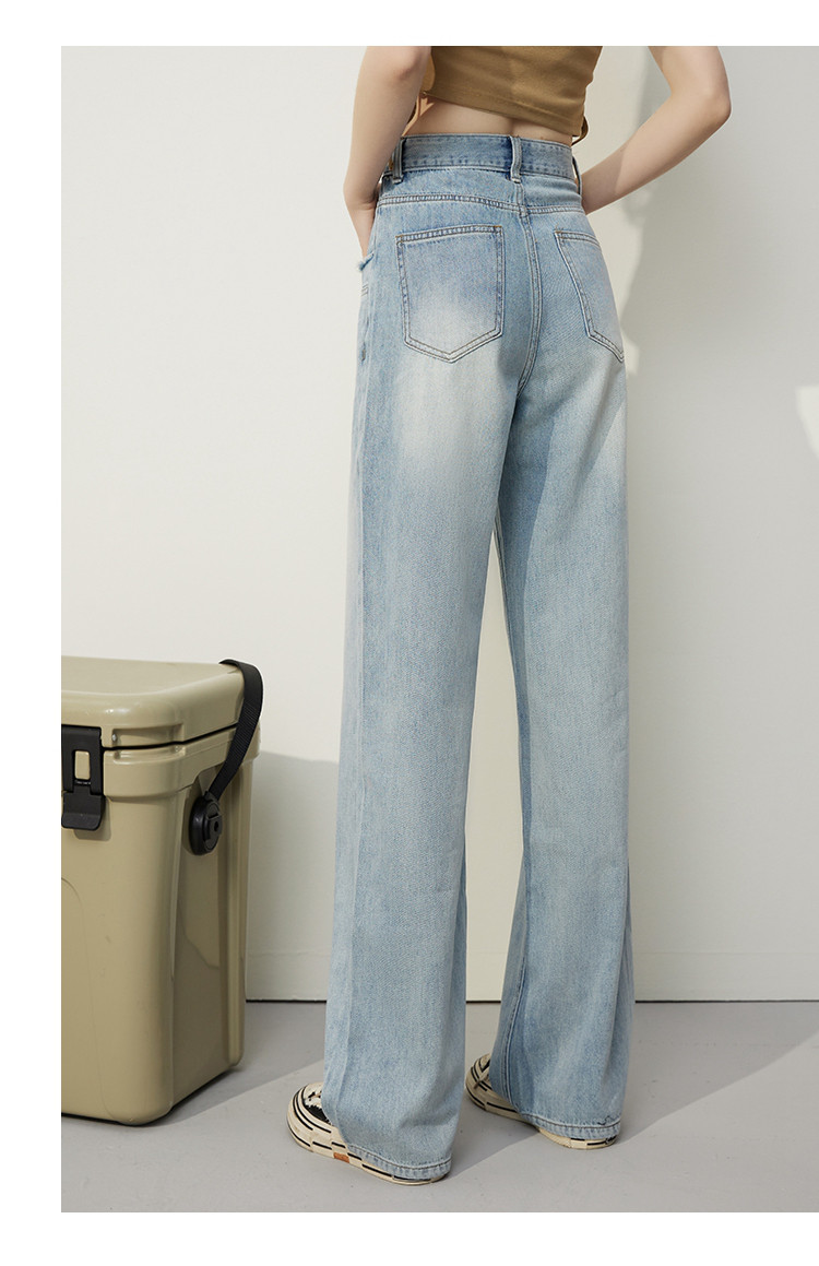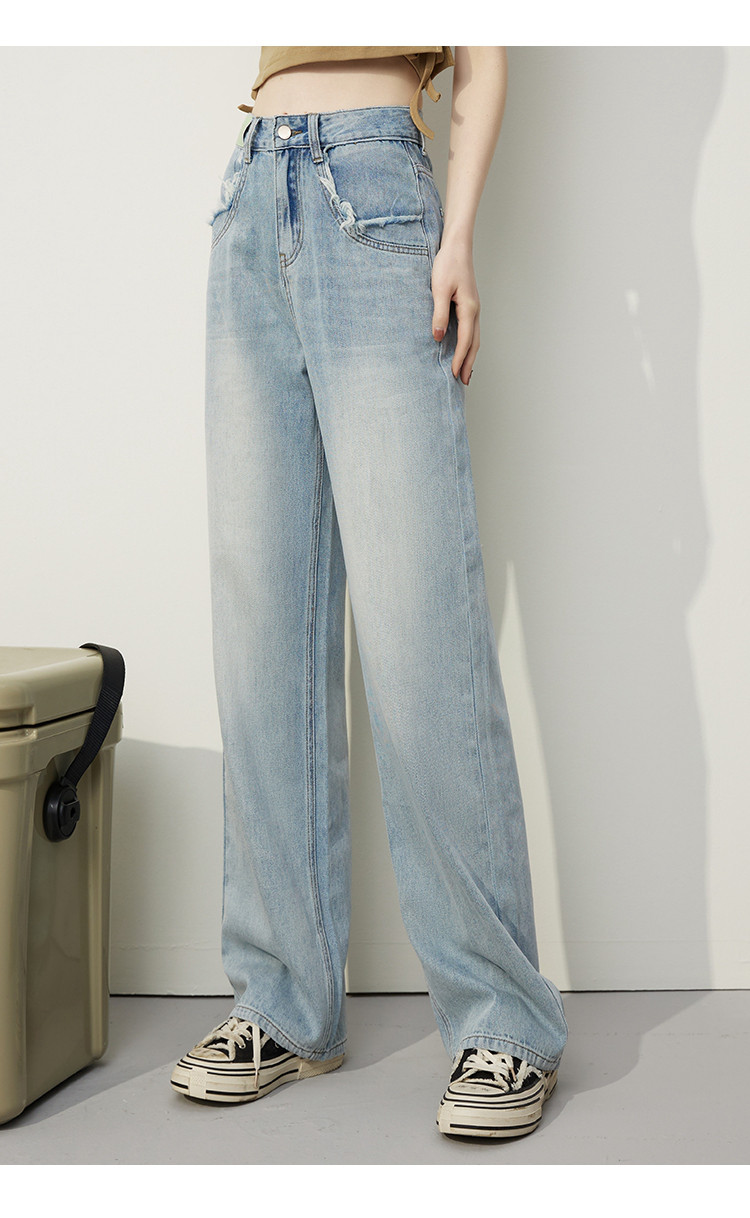 经典款设计感口袋街头风拖地裤夏季高腰休闲女式牛仔裤 897053