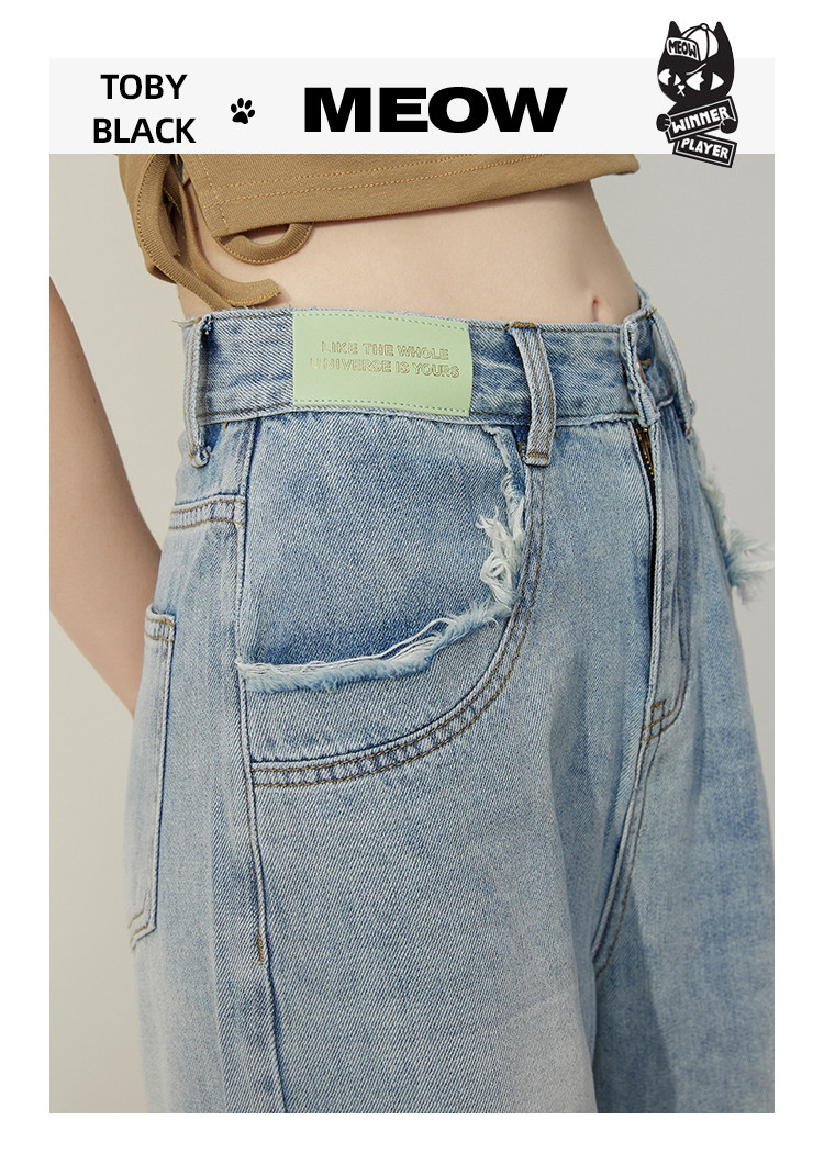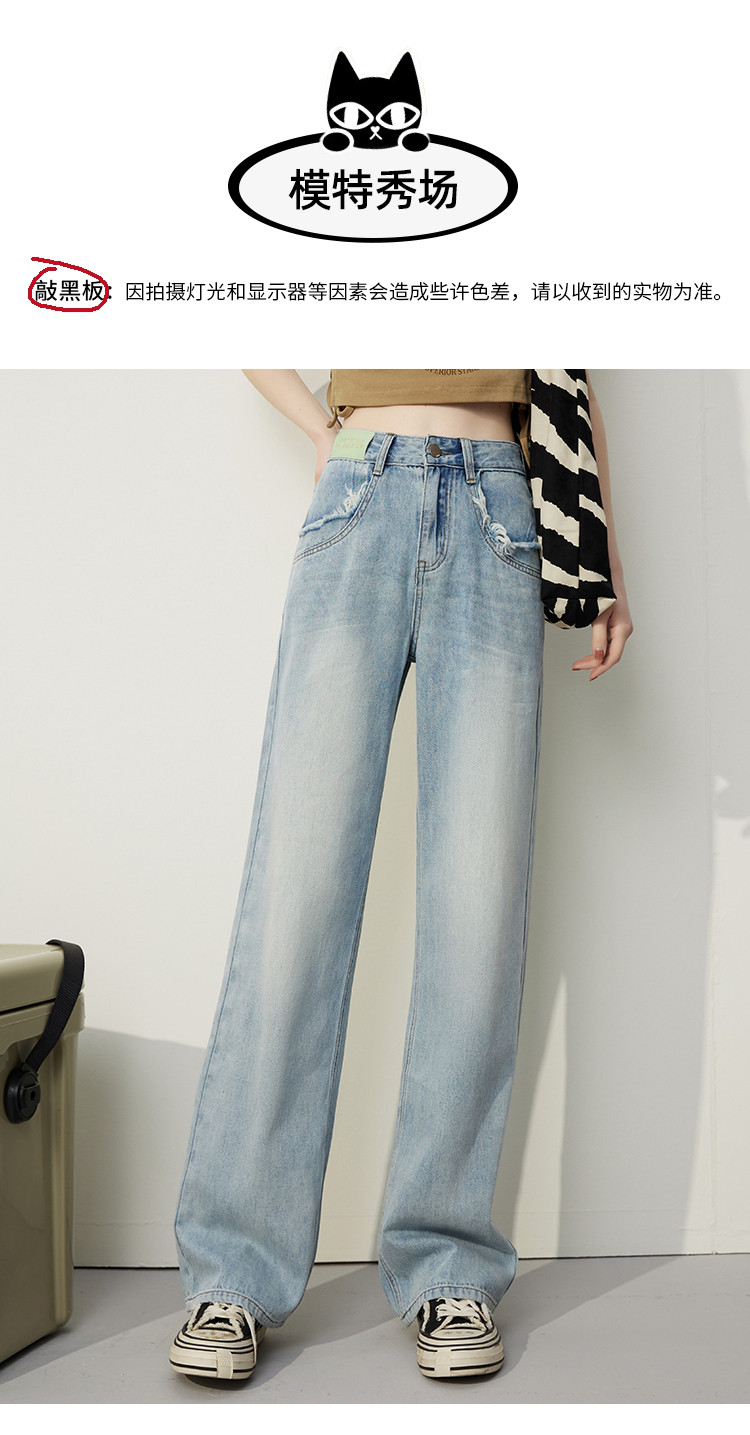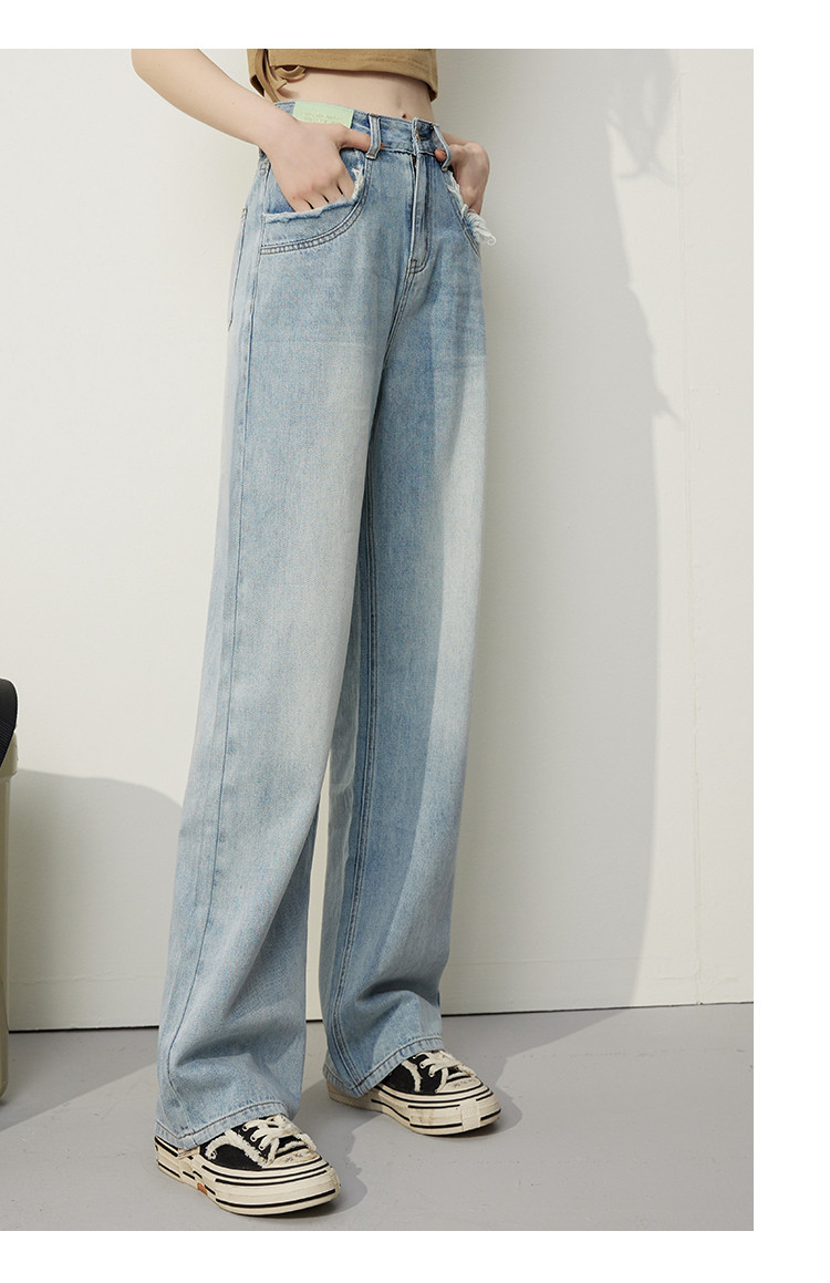 商品名称:经典款设计感口袋街头风拖地裤夏季高腰休闲女式牛仔裤 897053