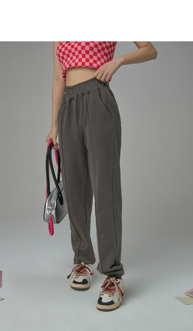 纯色束脚运动休闲裤女春夏秋宽松洋气长裤潮 059411