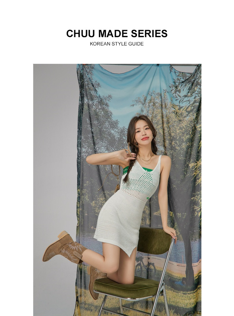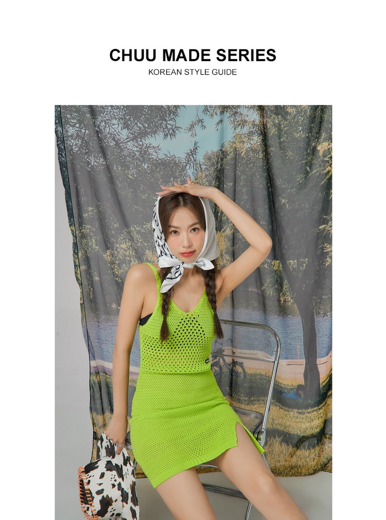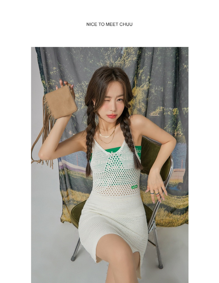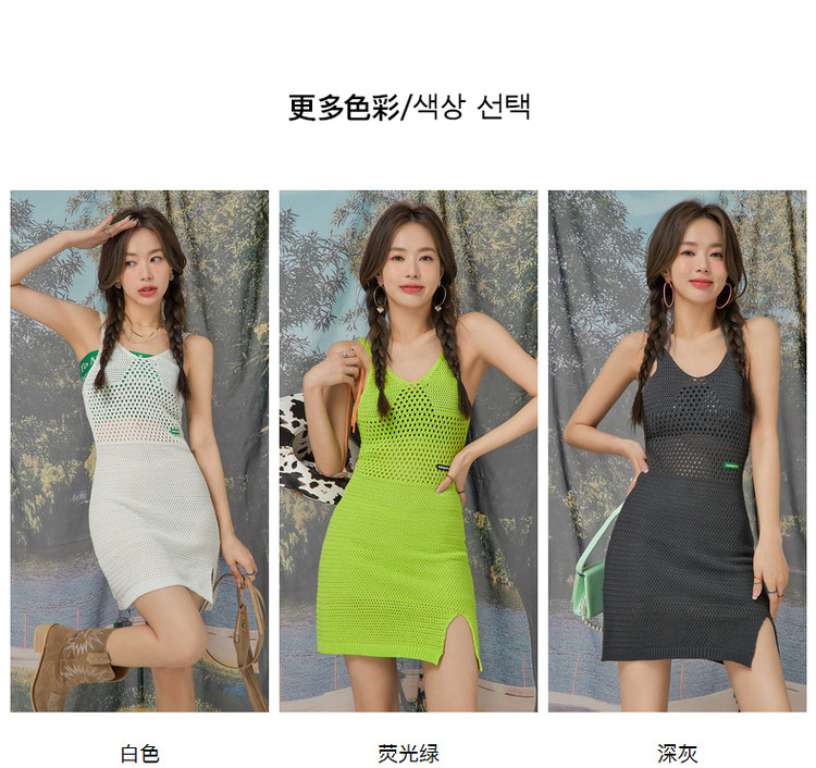 商品名称:镂空针织吊带连衣裙女夏辣妹外穿开叉短裙子 270739
