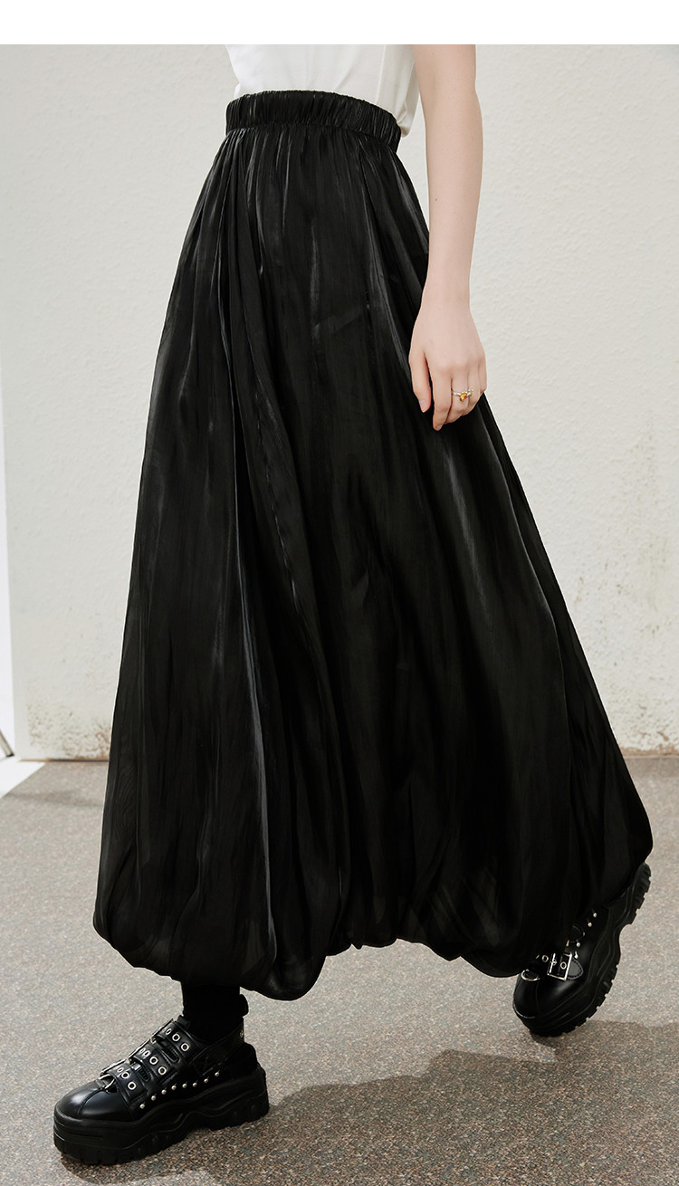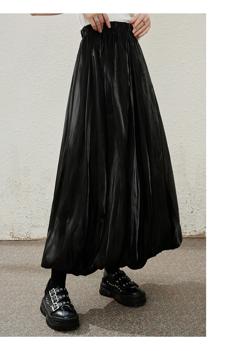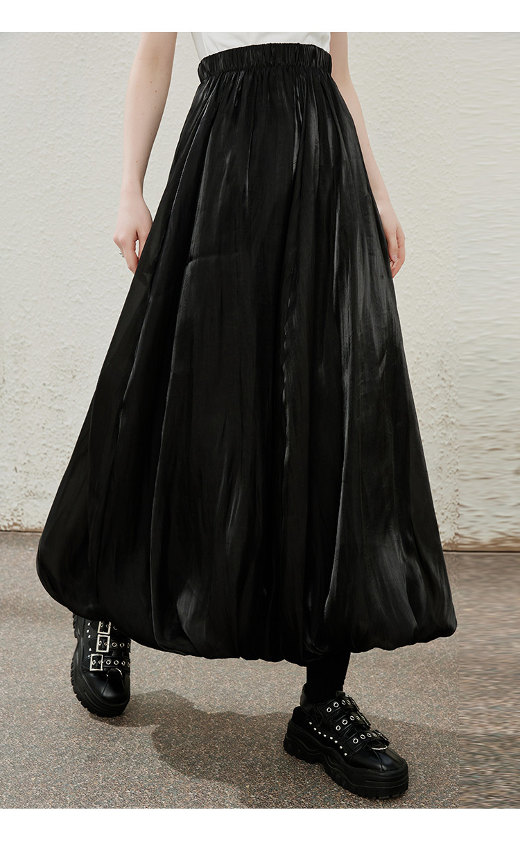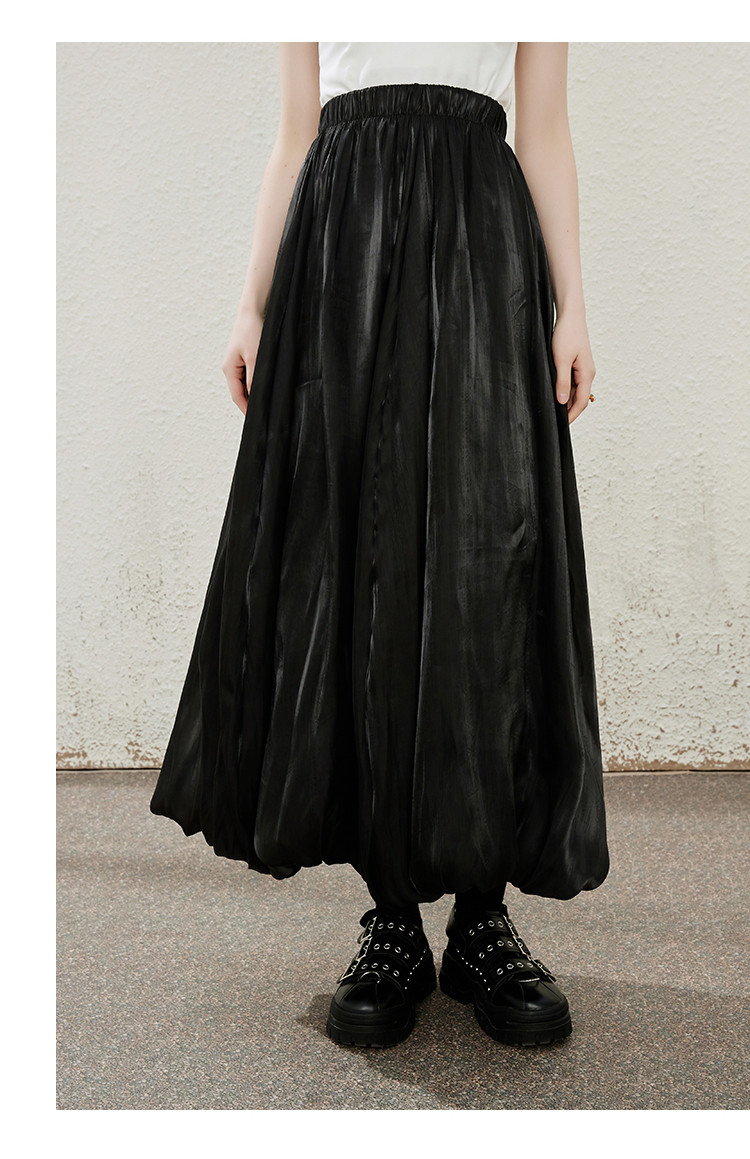 商品名称:珠光摆垂感纯色简约飘逸花苞裙夏季气质长款高腰半截裙 906397