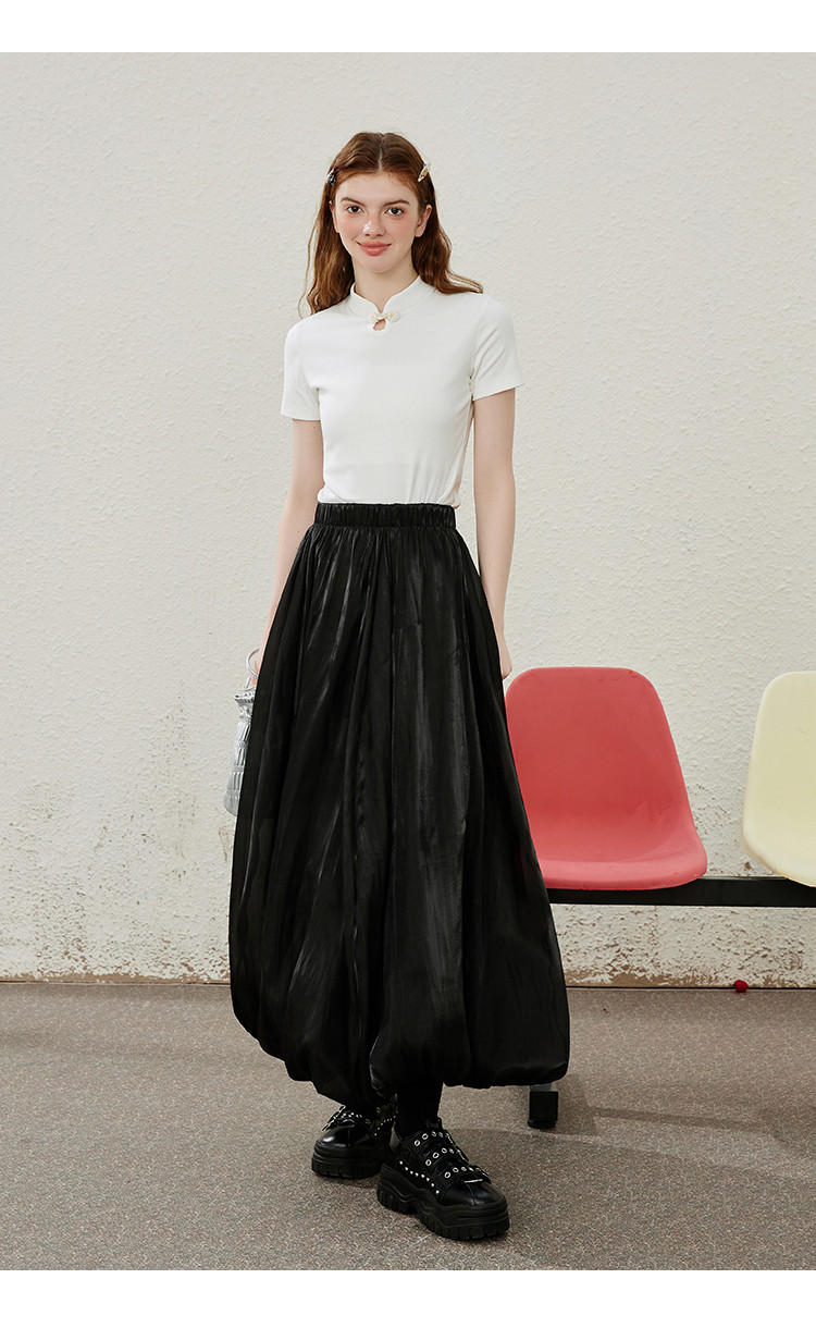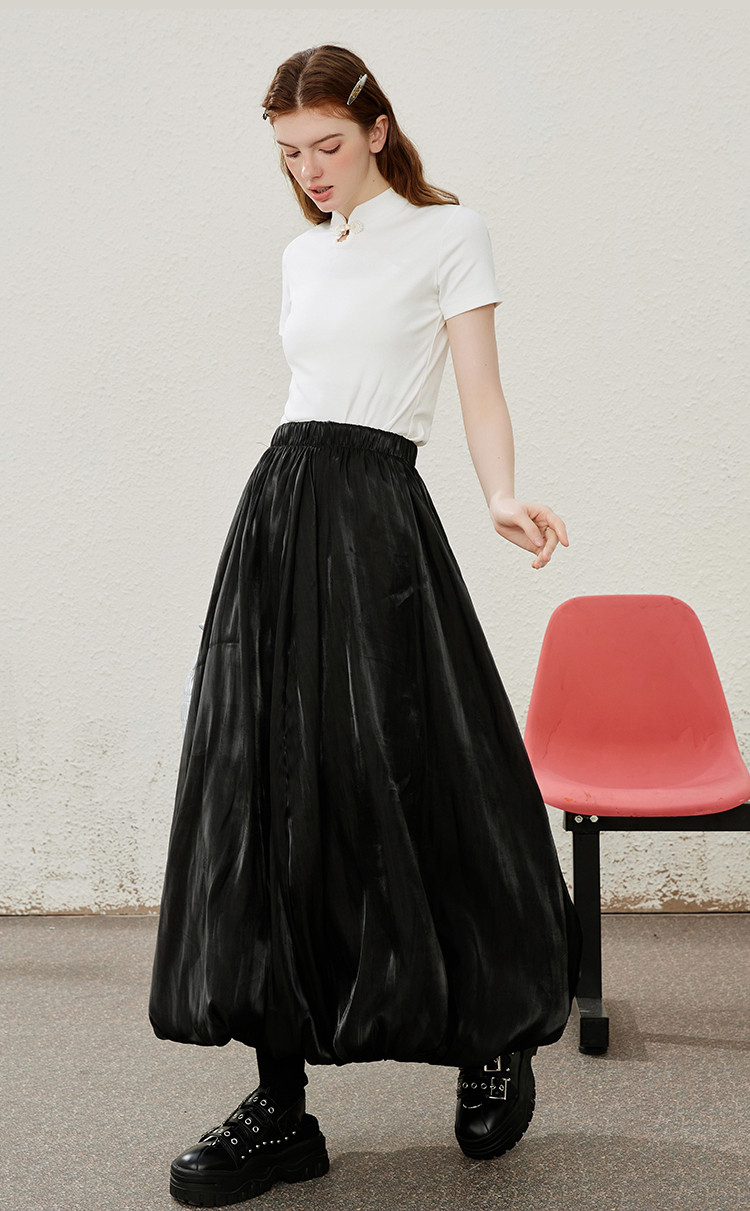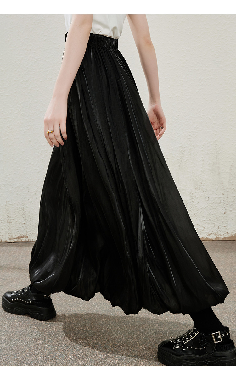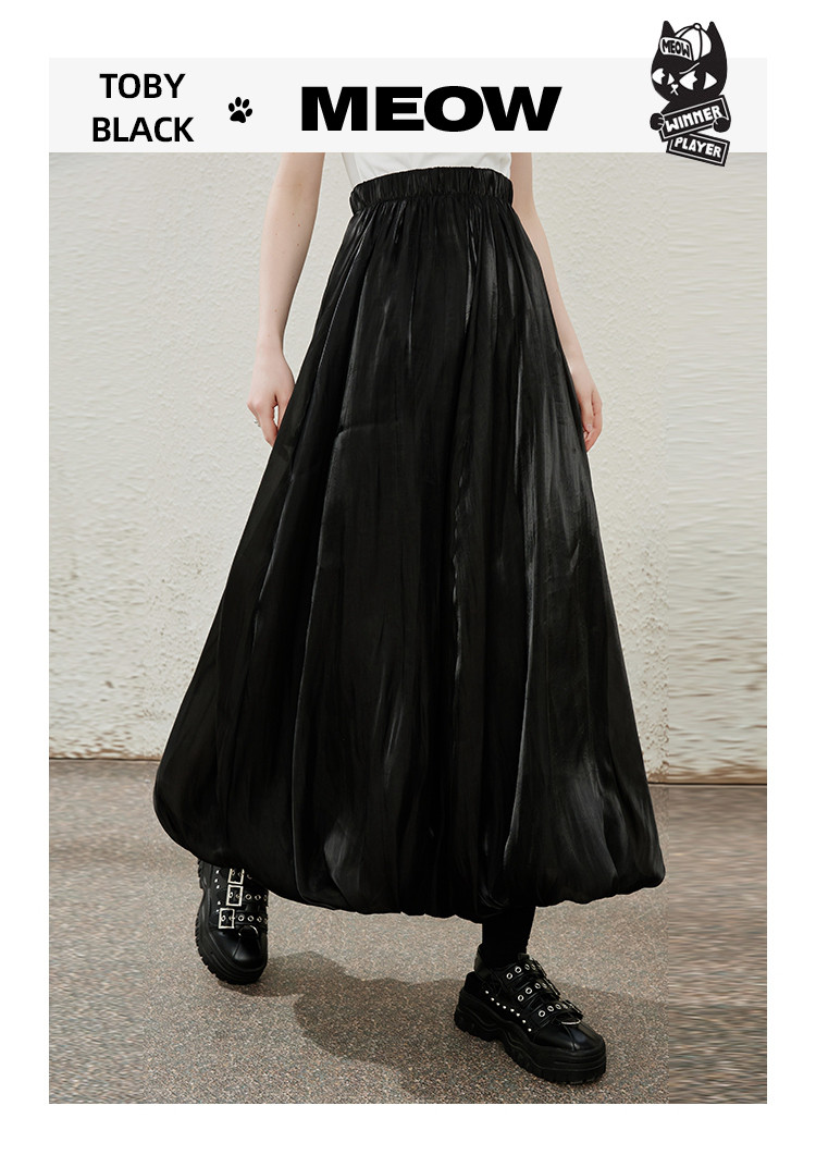 商品名称:珠光摆垂感纯色简约飘逸花苞裙夏季气质长款高腰半截裙 906397