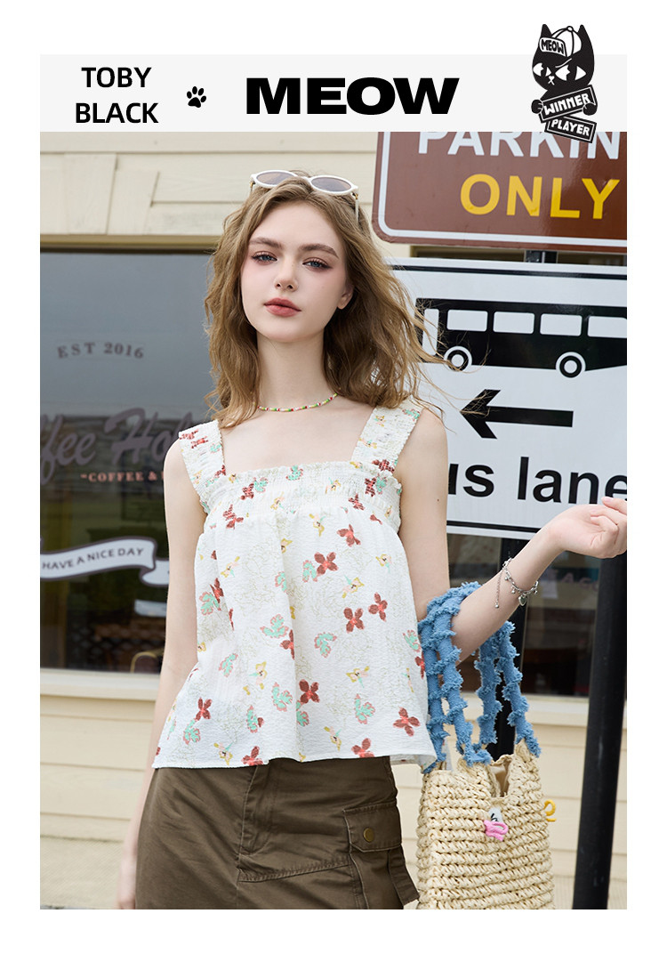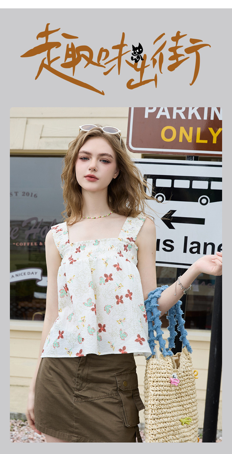 商品名称:法式小碎花短款吊带小衫夏季甜美设计感小清新女式背心 268509