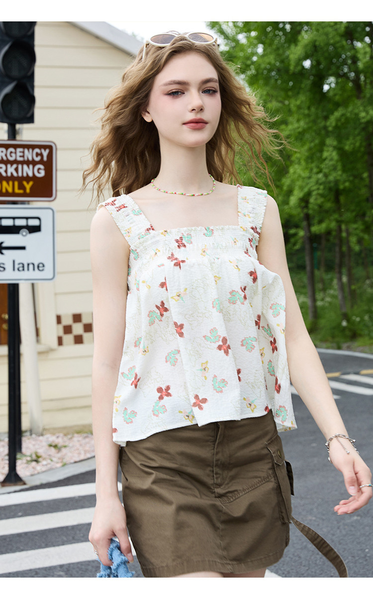 法式小碎花短款吊带小衫夏季甜美设计感小清新女式背心 268509