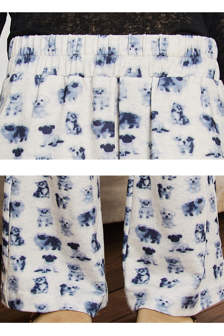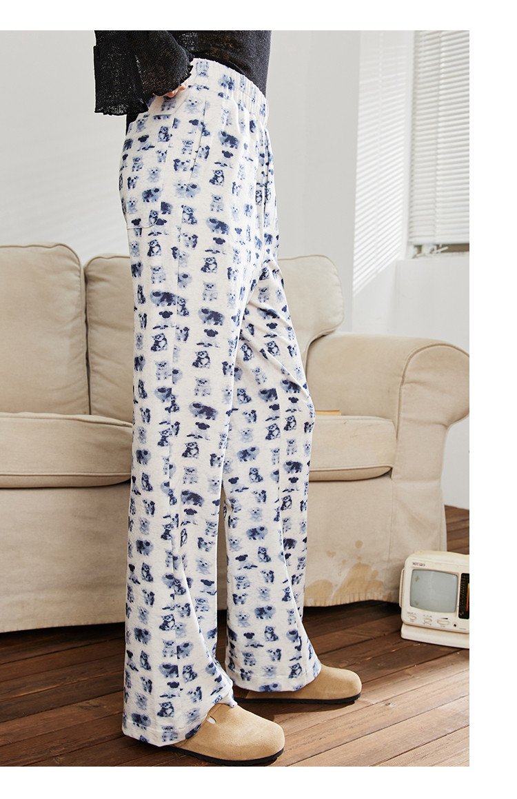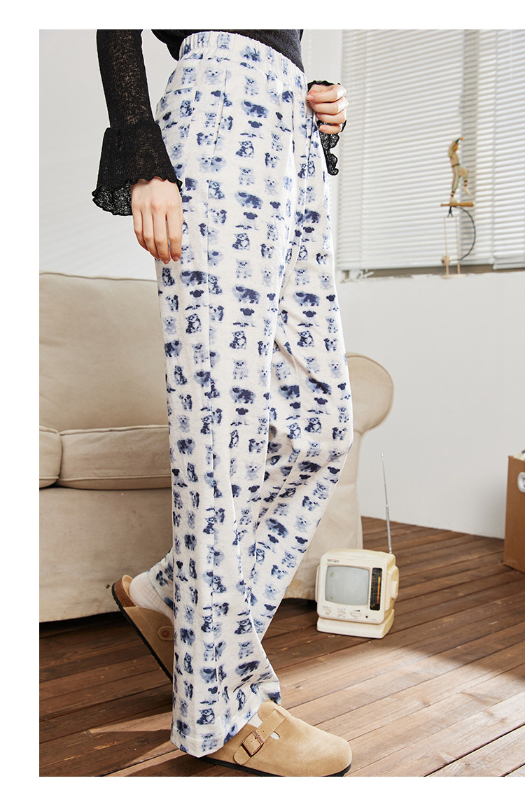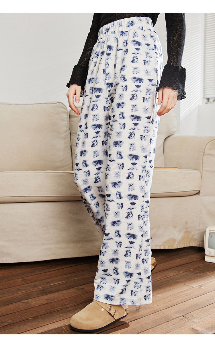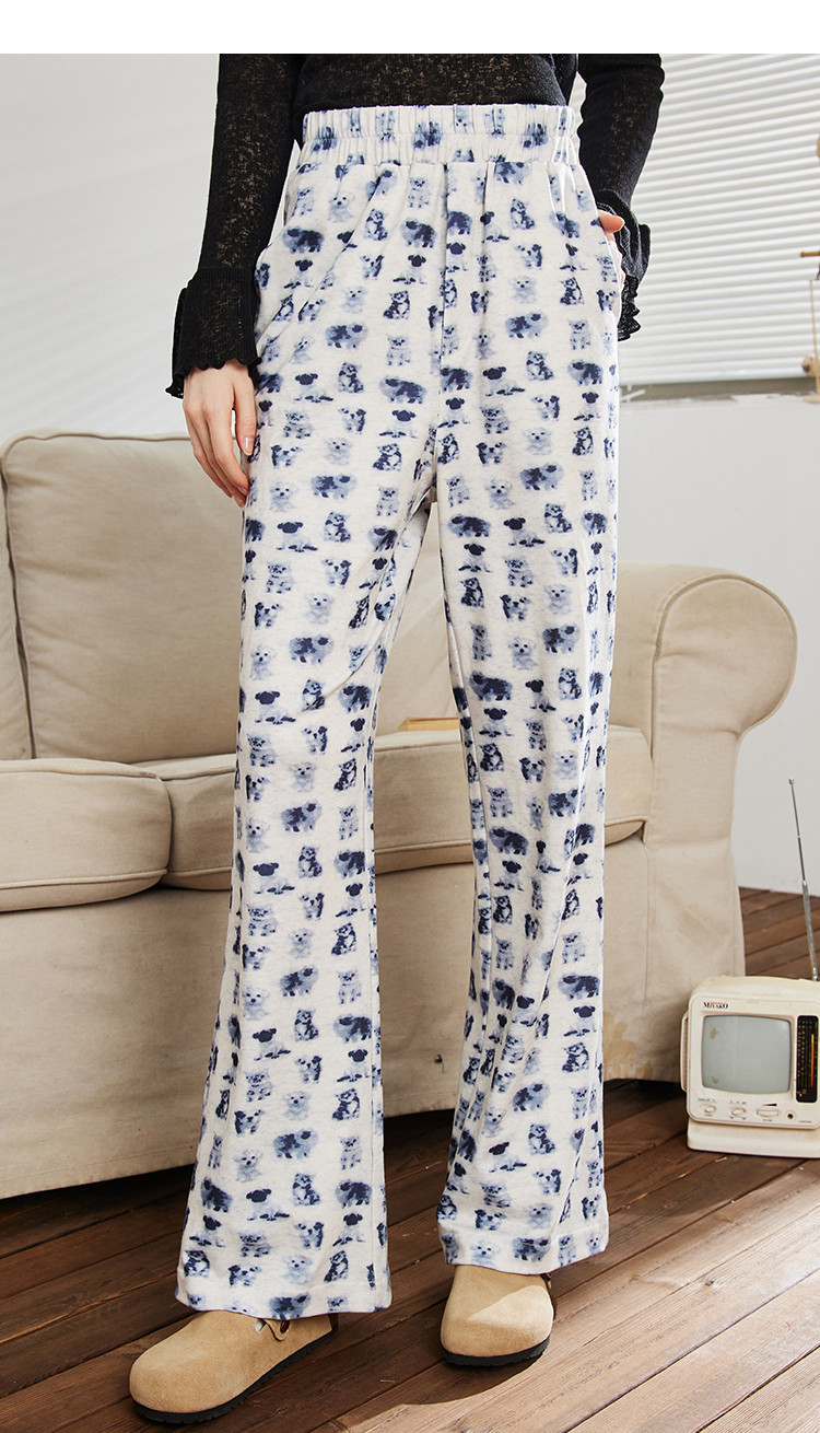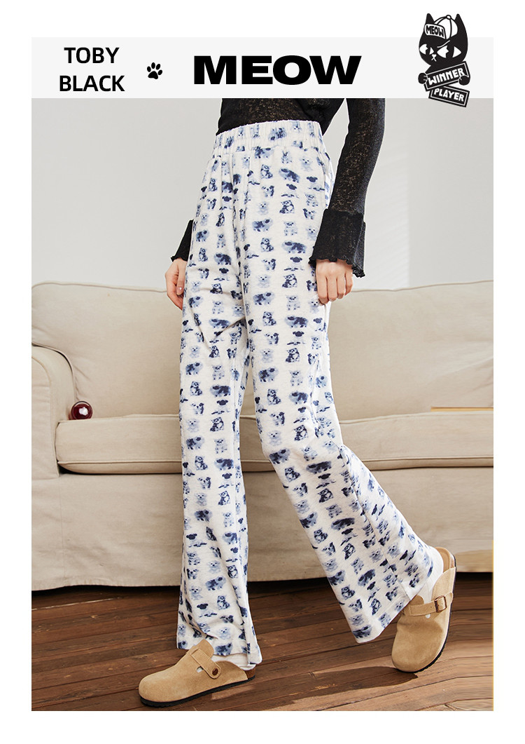 小狗猫咪印花高腰微喇裤春季宽松垂感遛弯裤女式休闲裤 199325