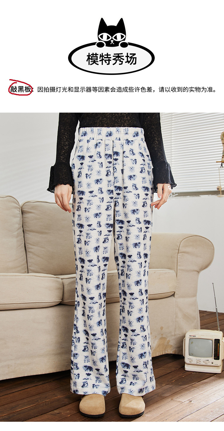 商品名称:小狗猫咪印花高腰微喇裤春季宽松垂感遛弯裤女式休闲裤 199325
